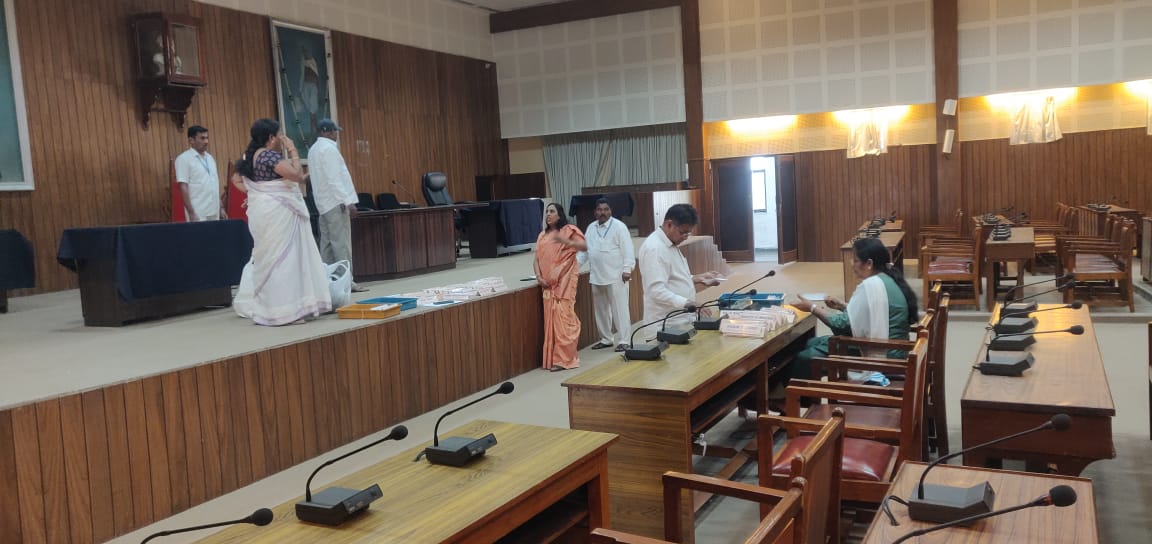 बेळगाव : महापौर-उपमहापौर निवडणूक गुरुवार दि. 15 रोजी घेण्यात येणार आहे. या निवडणुकीच्या तयारीला कौन्सिल विभागाचे कर्मचारी लागले आहेत. सोमवारी सभागृहाची स्वच्छता करण्यात आली. तसेच आसनांच्या ठिकाणी संबंधित नगरसेवक व लोकप्रतिनिधींचे नामफलक ठेवण्यात आले. महापौर-उपमहापौर निवडणूक जाहीर झाल्यानंतर कौन्सिल विभागाने आपली तयारी सुरू केली आहे. सर्व नगरसेवकांना नोटिसा दिल्या आहेत. याचबरोबर इतर कागदपत्रांचीही तयारी पूर्ण केली आहे. एकूण 58 नगरसेवक याचबरोबर आमदार, खासदार, विधान परिषद सदस्य या सर्वांचे नामफलक ठेवण्यात येत आहेत. महापालिकेने निवडणुकीची तयारी पूर्ण केली असून गुरुवारी सकाळी 9 वाजता मतदान प्रक्रियेला सुरुवात होणार आहे. महापौरपद अनुसूचित महिलेसाठी आरक्षित आहे. तर उपमहापौरपद सर्वसामान्यांसाठी आहे. त्यामुळे उपमहापौर पदासाठीच अधिक चुरस निर्माण झाली आहे. सध्या भाजपची सत्ता असून भाजपचाच महापौर-उपमहापौर होण्याची शक्यता आहे. नूतन आयुक्त राजश्री जैनापुरे यांच्या मार्गदर्शनाखाली ही निवडणूक होणार आहे.