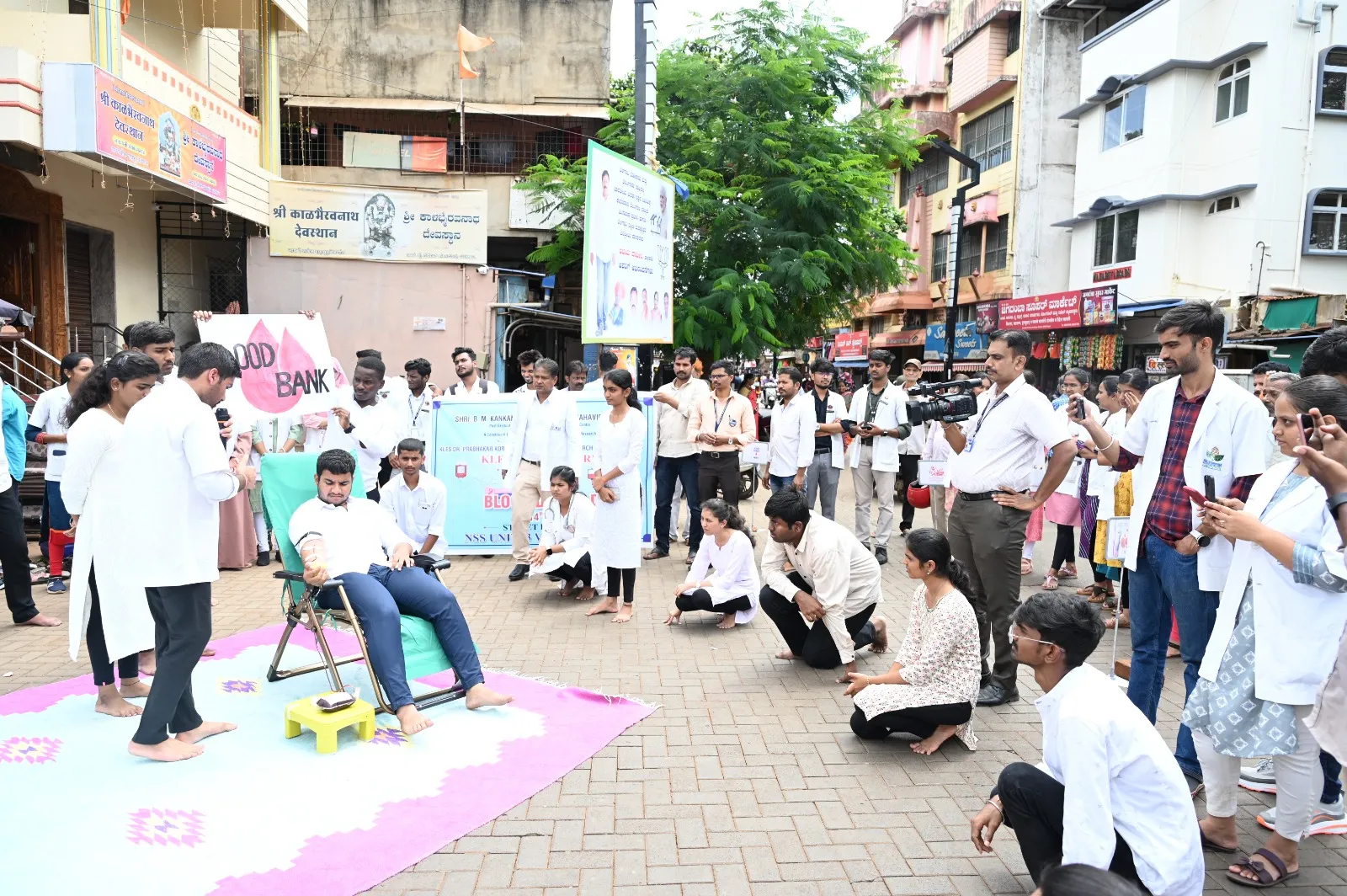 जागतिक रक्तदान दिनाच्या निमित्ताने केएलई डॉ. प्रभाकर कोरे ब्लड बँक-एनएसएस विभाग तसेच बैलहोंगल येथील डॉ. रामण्णावर चॅरिटेबल ट्रस्ट यांच्या संयुक्त विद्यमाने नाथ पै सर्कल व टिळक चौक येथे पथनाट्या सादर करण्यात आले.