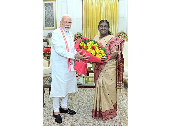 पंतप्रधान नरेंद्र मोदी यांनी रविवारी राष्ट्रपती द्रौपदी मुर्मू यांची भेट घेतली. ही बैठक राष्ट्रपती भवनात झाली. तथापि, पंतप्रधान मोदी आणि राष्ट्रपती मुर्मू यांच्यात ही भेट का झाली हे स्पष्ट झालेले नाही. राष्ट्रपती भवनाच्या अधिकृत ‘एक्स’ हँडलवरून भेटीचे छायाचित्र पोस्ट करण्यात आले आहे. त्यात पंतप्रधान नरेंद्र मोदी यांनी राष्ट्रपती भवनात राष्ट्रपती द्रौपदी मुर्मू यांची भेट घेतली असे ट्विट करण्यात आले आहे.