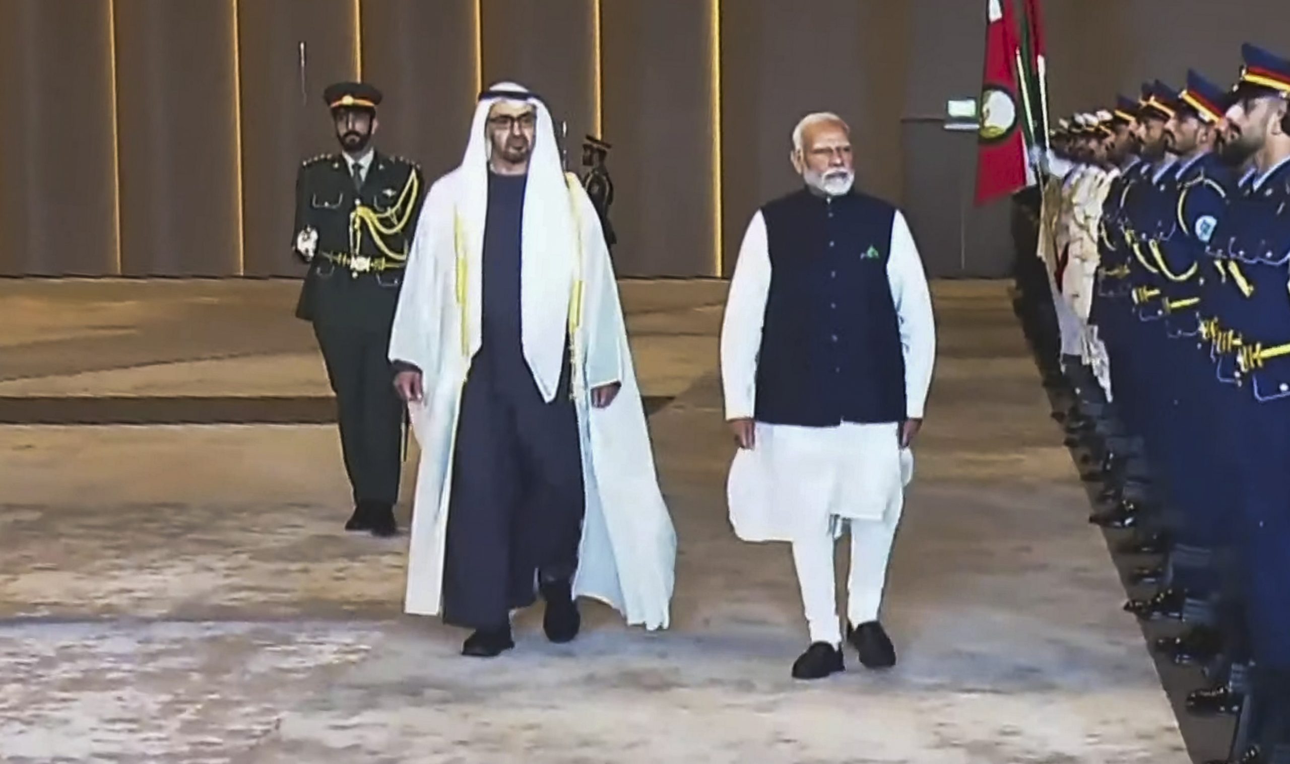 अबुधाबीत आगमन झाल्यानंतर पंतप्रधान नरेंद्र मोदी यांचा जसा शासकीय सन्मान करण्यात आला, तसाच येथील भारतीय समाजाकडूनही करण्यात आला आहे. या देशात काम करणाऱ्या भारतीयांची संख्या मोठी आहे. त्यांनी पंतप्रधान नरेंद्र मोदी यांच्या स्वागतासाठी मोठी गर्दी केली होती.