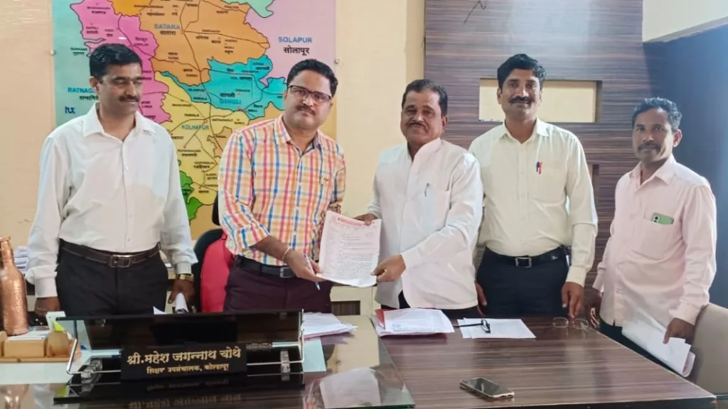 जिल्ह्यांतील खाजगी प्राथमिक शाळांतील कर्मचाऱ्यांना राष्ट्रीयकृत बँकेतून पगार मिळण्यांसाठी शिक्षक कर्मचाऱ्यांना शालार्थ प्रणालीमध्ये राष्ट्रीयकृत बँक निवडण्यास मुभा मिळावी व तशी सुविधा शालार्थ प्रणालीमध्ये उपलब्ध करून द्यावी अशी मागणी खाजगी प्राथमिक शिक्षक सेवक समितीचे राज्याध्यक्ष भरत रसाळे यांनी राज्याचे शिक्षण आयुक्त सूरज मांढरे व शिक्षण संचालक (प्राथमिक) शरद गोसावी यांचेकडे केली. या बाबतचे निवेदन त्यांना देण्यासाठी कोल्हापूर विभागाचे शिक्षण उपसंचालक महेश चोथे यांना देण्यात आले. यावेळी शिक्षण निरीक्षक रविंद्र चौगुले उपस्थित होते .
