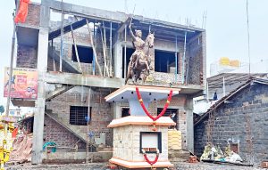 छत्रपती शिवाजी महाराजांची मूर्ती उभारण्यासाठी चौथरा बांधण्यात आला आहे. या चौथऱ्यावर मूर्ती बसविण्यात आली आहे. येत्या दोन महिन्यात महाराजांच्या मूर्तीचे अनावरण करण्यात येणार आहे.