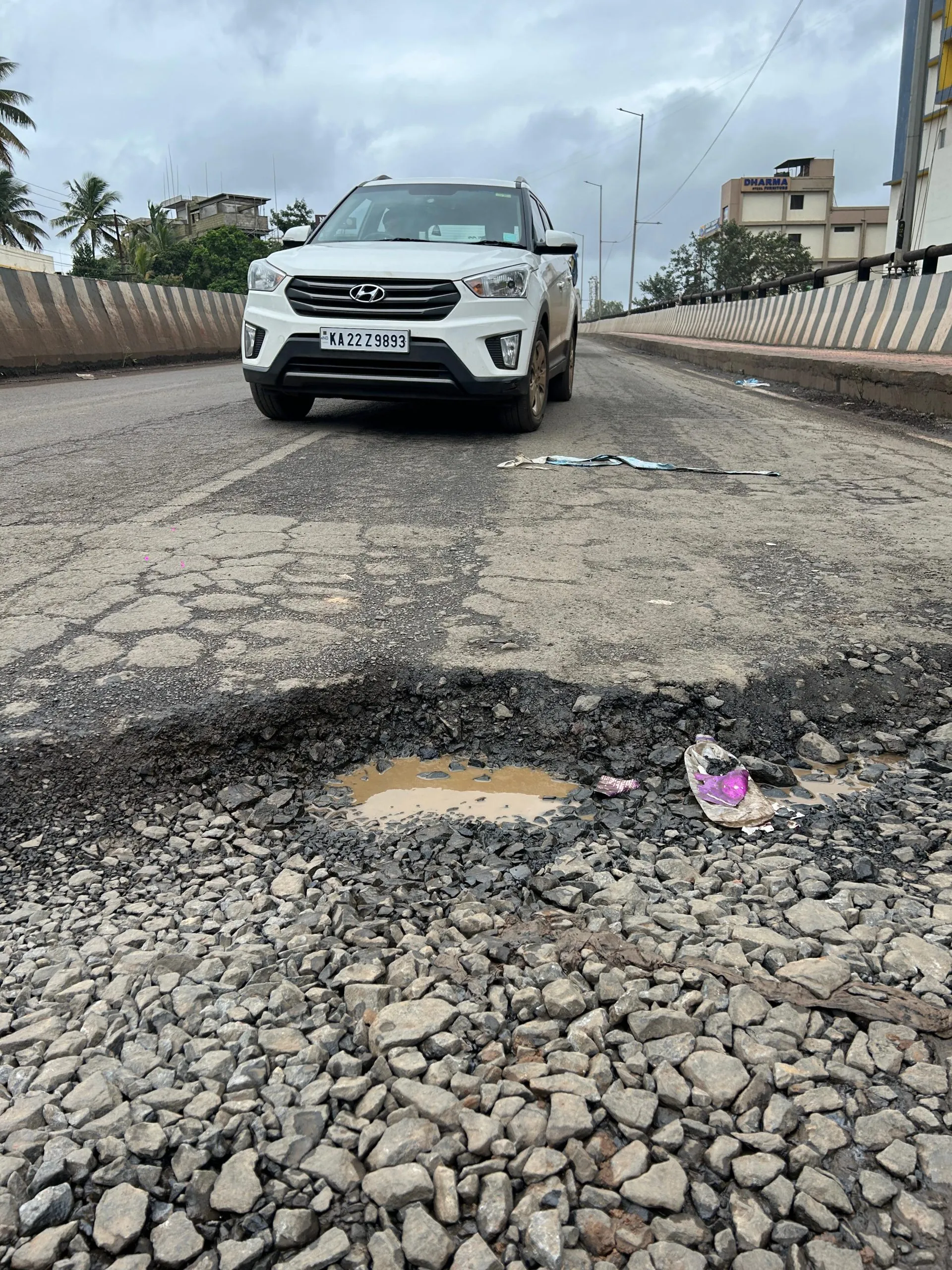 पंधरा दिवसांपूर्वी माजी नगरसेवक विनायक गुंजटकर व त्यांच्या सहकाऱ्यांनी उड्डाणपुलावरील खड्डे दुरुस्तीबाबत आंदोलन केले होते. दररोज शेकडो वाहने याच मार्गाने ये-जा करीत असल्याने धोका वाढला आहे. उड्डाणपुलावर ठिकठिकाणी खड्डे पडले असल्याने दुचाकी वाहन घसरून अपघात होत आहेत. त्यामुळे खड्ड्यांभोवती रांगोळ्या घालून अनोखे आंदोलन करत प्रशासनाचे लक्ष वेधून घेण्याचा प्रयत्न करण्यात आला होता.