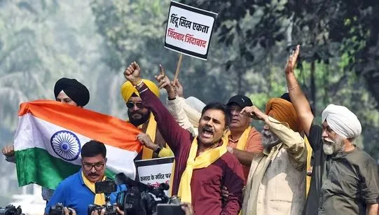 कॅनडातील ब्रॅम्प्टन येथे 4 नोव्हेंबर रोजी एका हिंदू मंदिरावर हल्ला झाला होता. या घटनेच्या निषेधार्थ रविवार, 10 नोव्हेंबर रोजी दिल्लीतील हिंदू-शीख ग्लोबल फोरमच्या कार्यकर्त्यांनी कॅनडाच्या दुतावासावर निषेध मोर्चा काढला. हिंदू संघटना आणि मंचाच्या शेकडो कार्यकर्त्यांनी मंदिरावरील हल्ल्याचा निषेध केला. ‘हिंदू आणि शीख एकत्र आहेत’ आणि ‘भारतीय लोक पॅनडातील मंदिरांची विटंबना सहन करणार नाहीत’ असे फलक घेऊन निदर्शक आंदोलनात सहभागी झाले होते. आंदोलकांना रोखण्यासाठी दिल्ली पोलिसांनी बॅरिकेड्स लावले होते. तसेच दुतावासाबाहेर अतिरिक्त सैनिक तैनात केले होते. मात्र आंदोलकांनी बॅरिकेड्स ढकलून पुढे जाण्याचा प्रयत्न केल्याने पोलिसांनी अनेकांना ताब्यात घेतले.