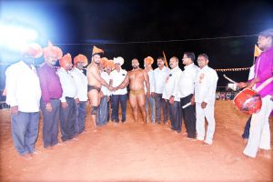 बेळगाव : येळ्ळूर येथे श्री कलमेश्वर, श्री चांगळेश्वरी व महालक्ष्मी देवीच्या वाढदिवसा निमित्त भव्य राष्ट्रीय स्तरीय कुस्ती मैदानात पंजाबच्या पुष्पेंदर अलमगीरने विनितकुमार माराचा 15 व्या मिनिटाला घुटण्यावर आडव्या हाताची पकड मिळवित चारमुंड्या चित करून मानाचा लोकमान्य केसरी किताब पटकावित उपस्थित 50 हजारहून अधिक कुस्ती शौकीनांची मने जिंकली. येळ्ळूर महाराष्ट्र मैदानात प्रमुख कुस्ती भारत केसरी, हिंद केसरी, सिंकदर शेखला मारलेला इंडियन नेव्हीचा मल पुष्पेंदर अलमगीर पंजाब, भारत केसरी विनितकुमार मारा ही कुस्ती लोकमान्य मल्टिपर्पज सोसायटीचे सभासद गजानन धामणेकर, अजित गरगट्टी, सुबोध गावडे, रमाकांत कोंडूसकर, रमेश गोरल, उमेश कुरेयाळकर, भोला पाखरे, प्रदिप देसाई, दौलत कुगजी आदी मान्यवरांच्या हस्ते ही कुस्ती लावण्यात आली. या कुस्तीत पहिली चार मिनिटे दोन्ही मल्लांनी एकमेकाची ताकद आजमावली. सातव्या मिनिटाला विनितने एकेरीपट काढून पायाला चाट मारून हप्त्यावरती फिरविण्याचा प्रयत्न केला. पण त्यातून पुष्पेंदरने रितसर सुटका करून घेतली. 11 व्या मिनिटाला पुष्पेंदरने एकेरीपट काढुन विनितकुमारला खाली घेत कब्जा मिळविला. यावेळी पुष्पेंदरने मानेचा कस काढून घुटण्यावरती फिरविण्याचा प्रयत्न केला. पण 135 किलो वजनाच्या विनितला घुटण्यावर फिरविने पुष्पेंदरला शक्य झाले नाही. त्यातून विनितने सुटका करून घेतले. 13 व्या मिनिटाला पुष्पेंदरने एकेरीपट काढून विनितवर कब्जा मिळविला. यावेळी घिश्शावर फिरविण्याचा प्रयत्न केला. पण त्यात अपयश आल्याने पुष्पेंदरने 15 व्या मिनिटाला घुटण्या डावाची पकड मिळवित आडव्या हाताची पकड मिळवित विनितला चारीमुंड्या चित्त करीत पुष्पेंदर विनितच्या छाताड्यावर बसला विजयोत्सव साजरा केला. पुष्पेंदरला लोकमान्यचे गजानन धामणेकर, अजित गरगट्टी, सुबोधा गावडे यांच्या हस्ते लोकमान्य केसरीचा किताब देऊन त्याला गौरविण्यात आले.