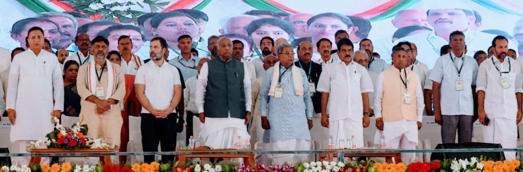 यावेळी काँग्रेसचे अध्यक्ष मल्लिकार्जुन खर्गे म्हणाले, बेळगावची भूमी पवित्र असून याठिकाणी महात्मा गांधीजींचे अधिवेशन झाले. दरम्यान गांधीजींनी हा गरिबांचा देश असून उच्च-नीच भेदभाव केला जाणार नाही, अशी घोषणा दिली होती. मात्र ती घोषणा आता भाजपकडून पायदळी तुडवली जात आहे. काँग्रेसने ‘भारत जोडो’ यात्रा काढून देशातील महागाई, बेरोजगारी या विरोधात आवाज उठविला असल्याचे त्यांनी सांगितले. यावेळी राहुल गांधी आणि इतर नेते व मंत्र्यांच्या हस्ते युवा गॅरंटी कार्डचे अनावरण करण्यात आले. याला उपस्थित काँग्रेस कार्यकर्त्यांनी टाळ्या वाजवून प्रतिसाद दिला. यावेळी मोठ्या संख्येने काँग्रेस कार्यकर्ते, समर्थक उपस्थित होते.