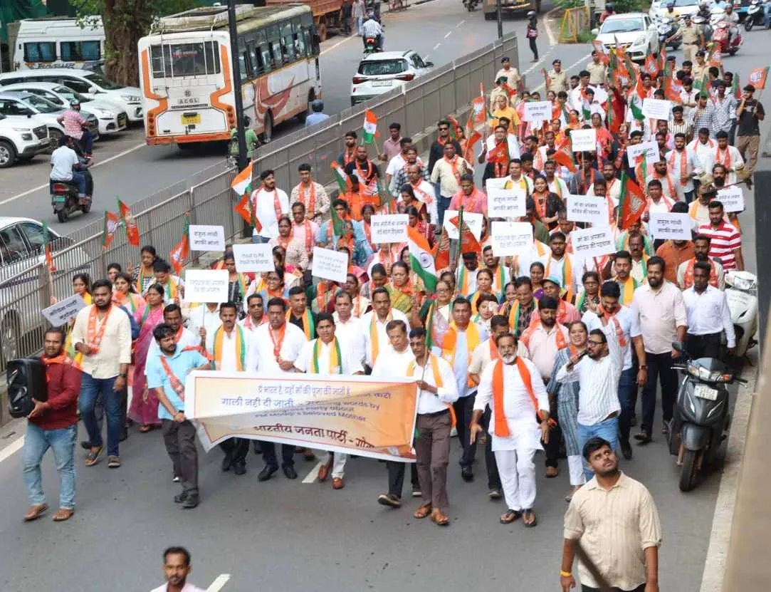पणजी : पंतप्रधान नरेंद्र मोदी आणि त्यांच्या स्व. मातोश्रींबाबत अवमानकारक वक्तव्ये केल्याप्रकरणी गोवा प्रदेश भाजपतर्फे पणजीत मोर्चा काढून काँग्रेस नेत्यांचा निषेध नोंदवण्यात आला. यावेळी भाजपचे आमदार, पदाधिकारी तसेच प्रमुख कार्यकर्ते मोठ्या संख्येने उपस्थित होते. काँग्रेस नेते राहुल गांधी पंतप्रधानांना विरोध करत असतानाच त्यांना अवमानकारक शब्द वापरत आहेत. आता ते त्यांच्या स्वर्गीय मातोश्रींना अवमानकारक शब्द वापरु लागले आहेत, याबद्दल त्यांनी माफी मागावी, अशी मागणी करण्यात आली. काल सोमवारी सायंकाळी पणजीतील भाजप कार्यालयासमोर सर्वजण जमले आणि त्यांनी काँग्रेस पक्ष आणि त्यांचे नेते यांचा निषेध केला.