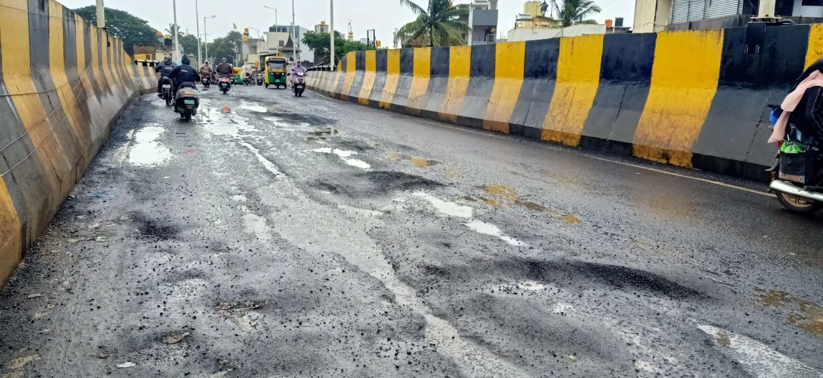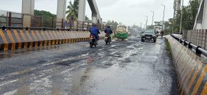 कपिलेश्वर रेल्वे उड्डाणपुलावरील रस्त्यावर दोन वर्षांपूर्वी दुरुस्ती करण्यात आली होती. परंतु अवघ्या काही दिवसातच उड्डाणपुलावरील रस्त्याची खडी निखळली. सध्या तर उड्डाण पुलाच्या मुख्य भागात पावसाचे पाणी साचले असून खडीचे ढिगारे साठले आहेत. रस्त्याची खडी वाहून गेल्याने उड्डाणपुलावर चर पडली आहे. त्यामुळे केव्हा अपघात होईल याची शाश्वती नाही. विशेषत: महिला वर्गाला वाहने चालविताना अनेक समस्या येत आहेत. एखाद्या निष्पापाचा जीव गेल्यानंतरच प्रशासनाला जाग येणार का? असा संतप्त प्रश्न वाहनचालकांतून विचारला जात आहे.
