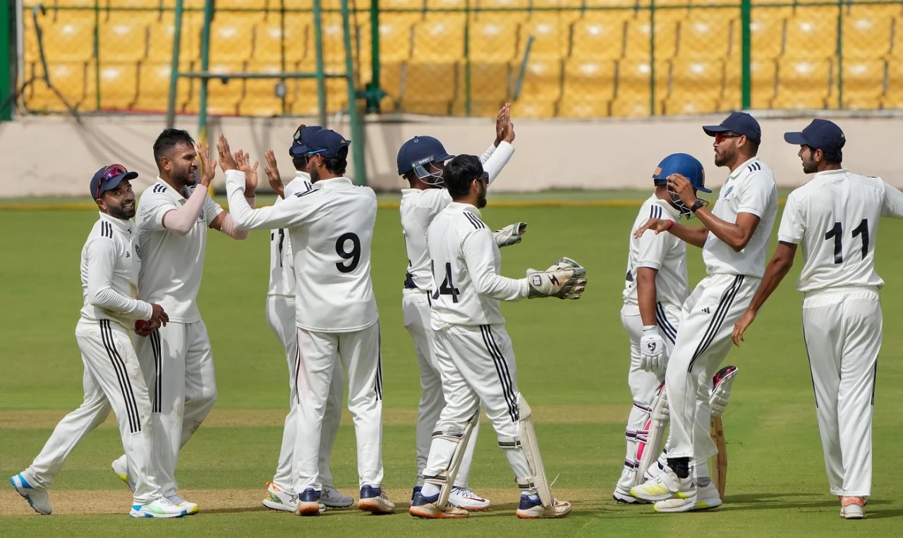 2024 च्या रणजी क्रिकेट स्पर्धेतील येथे इलाईट क गटातील सुरु असलेल्या सामन्यात शनिवारी खेळाच्या दुसऱ्या दिवसाअखेर रेल्वेने कर्नाटकावर 190 धावांची आघाडी मिळवली आहे. या सामन्यात रेल्वेचा पहिला डाव 155 धावांत आटोपल्यानंतर कर्नाटकाने 6 बाद 90 या धावसंख्येवरून दुसऱ्या दिवशीच्या खेळाला पुढे प्रारंभ केला आणि आणि त्याचे शेवटचे चार गडी 84 धावांची भर घालत तंबूत परतले. कर्नाटकाचा पहिला डाव 50.5 षटकात 174 धावात आटोपला. कर्नाटकाच्या पहिल्या डावात एकाही फलंदाजाला 30 धावांचा टप्पा ओलांडता आला नाही. रेल्वेच्या आकाश पांडे आणि अयान चौधरी यांनी प्रभावी गोलंदाजी केली. पांडेने 63 धावात 5 तर चौधरीने 39 धावात 4 गडी बाद केले. कर्नाटकाने रेल्वेवर पहिल्या डावात 19 धावांची नाममात्र आघाडी घेतली. 19 धावांनी पिछाडीवर असलेल्या रेल्वेने दुसऱ्या डावात बऱ्यापैकी फलंदाजी करत दिवसअखेर 62 षटकात 8 बाद 209 धावा जमवत कर्नाटकावर 190 धावांची आघाडी मिळवली. रेल्वेच्या दुसऱ्या डावात मोहमद कैफ 1 षटकार आणि 4 चौकारांसह 51 धावावर खेळत आहे. कर्णधार प्रथम सिंगने 1 षटकार आणि 4 चौकारांसह 33, सुरज अहुजाने 1 षटकार आणि 5 चौकारांसह 48, साहेब युवराज सिंगने 6 चौकारांसह 28 धावा जमवल्या. कर्नाटकातर्फे विशाखने 3, कविरप्पाने 2 तर कौशिक, समर्थ आणि हार्दिक राज यांनी प्रत्येकी एक गडी बाद केला.