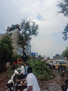 खानापूर रोडवरील खादरवाडी क्रॉसजवळ एक झाड कोसळले. यावेळी सुदैवाने तेथे कोणीच नसल्याने मोठा अनर्थ टळला आहे. झाड कोसळल्यानंतर काही तरुणांनी तातडीने त्याच्या फांद्या बाजूला करून रस्ता वाहतुकीसाठी खुला केला आहे. तर त्याच रस्त्यावर बेम्को परिसरात पाणी साचून होते. म्हणावा तसा दमदार पाऊस नसला तरी पाणी साचून राहिले. दमदार पाऊस कोसळला असता तर या परिसरात गंभीर परिस्थिती निर्माण झाली असती. दुपारीच या पावसाला सुरुवात झाल्याने बाजारपेठेतील फेरीवाले, बैठे व्यापाऱ्यांची तारांबळ उडाली. जोरदार पाऊस कोसळेल या भीतीने आपले साहित्य तातडीने गोळा केले. त्यानंतर आडोसा शोधला. काहीवेळाने पाऊस गेला. त्यामुळे पुन्हा त्यांनी आपले व्यवसाय सुरू केले. मात्र या पावसामुळे त्यांची काहीवेळ तारांबळ उडाली होती. पावसापेक्षा ढगांचा गडगडाट आणि वाराच अधिक होता. गेल्या काही दिवसांपासून असाच प्रकार घडत आहे. दमदार पाऊस पडावा, अशी अपेक्षा असताना वाऱ्यामुळे पाऊस हुलकावणी देत आहे.