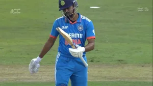 प्रदीर्घ कालावधीनंतर टीम इंडियाच्या प्लेइंग 11 मध्ये पुनरागमन करणाऱ्या श्रेयस अय्यरने गिलसह डाव सांभाळण्याचा प्रयत्न केला. या दरम्यान, अय्यरने पाकचा वेगवान गोलंदाज हारिस रौफला कव्हरच्या दिशेने चौकारही मारला पण यावेळी त्याची बॅट तुटली. यानंतर श्रेयसला लगेच बॅट बदलावी लागली. हॅरिस रौफ सामन्याचे आठवे षटक टाकण्यासाठी आला होता. या षटकात तो 147 ते 148 किमी प्रती तास वेगाने गोलंदाजी करत होता. याच षटकातील चौथा चेंडू रौफने 147 किमी प्रती तास वेगाने टाकला. अय्यरनेही हा चेंडू चांगल्या प्रकारे कव्हर ड्राईव्ह मारला. या दरम्यान त्याची बॅट तुटली. मात्र चेंडूचा वेग आणि अय्यरचा चांगला फटका यामुळे चेंडू सीमापार गेला. मात्र अय्यरला आपली बॅट बदलावी लागली. या बदलेल्या बॅटने शेवटच्या चेंडूवरही अय्यरने रौफला चौकार लगावला. यानंतर रौफने आपल्या पुढच्या 10 व्या षटकात मात्र अय्यरचा बदला घेतला. त्याने 9 चेंडूत 14 धावा करणाऱ्या अय्यरला बाद करत भारताला तिसरा धक्का दिला.