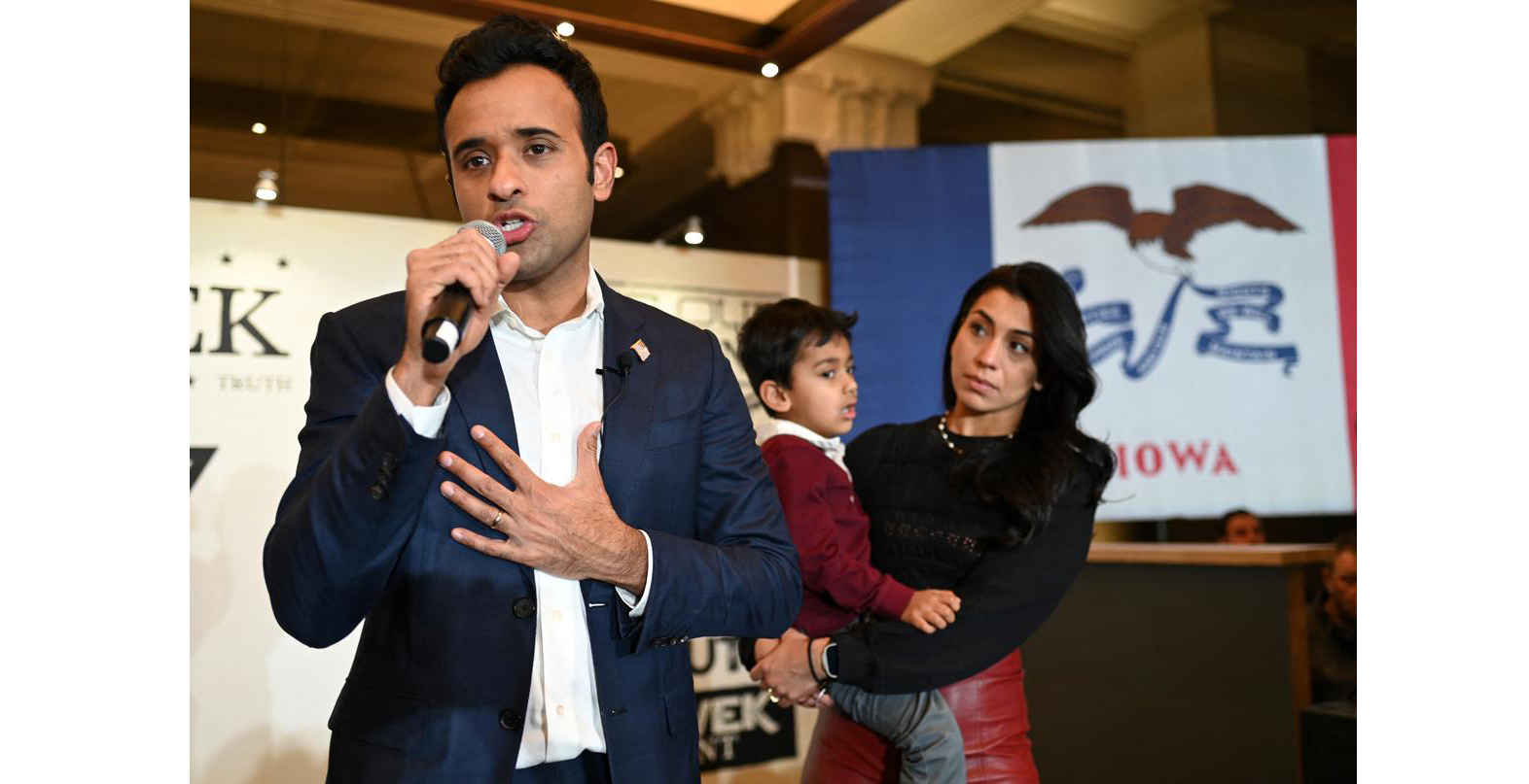 आयोवाच्या निवडणुकीत फ्लोरिडाचे गव्हर्नर रॉन डी-सेंटिस तर तिसऱ्या क्रमांकावर भारतीय वंशाच्या निक्की हेली राहिल्या आहेत. आयोवात प्रचार करताना ट्रम्प यांनी विवेक रामास्वामी यांच्यावर निशाणा साधला होता. ट्रम्प यांनी रामास्वामी यांना थेट फ्रॉड आणि ठक संबोधिले होते. तसेच ट्रम्प यांनी स्वत:च्या समर्थकांना रामास्वामी यांना साथ न देण्याचे आवाहन केले होते. विवेक यांना मतदान म्हणजे विरोधी पक्षाला मतदान केल्यासारखे असल्याचे ट्रम्प यांनी म्हटले होते.