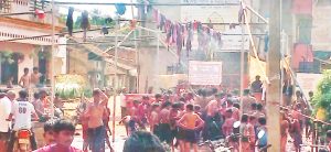 दुपारी बारापर्यंत अवघा तालुका रंगात रंगून गेला होता. गल्ल्या-गल्यांमध्ये, गावच्या चौकात, गावच्या वेशीवर, कोपऱ्यावर रंग खेळण्याचे आयोजन तऊणांनी केले होते. बहुतांशी ठिकाणी पारंपरिक वाद्यांचा व हलगीचा गजर सुरू होता. हलगीच्या गजरात हक्कदार व पुजारी यांनी सकाळी होळी कामण्णा व गावातील देवदेवतांची पूजा केली. त्यानंतर रंगोत्सवाला सुरुवात करण्यात आली. बऱ्याच गावांमध्ये सकाळी आठ वाजल्यापासून रंग खेळण्यास सुरुवात करण्यात आली. तर सकाळी दहा ते अकराच्या दरम्यान रंगोत्सवाला अधिक उधाण आले होते. दुपारी बारा… साडेबारापर्यंत रंग खेळणे सुरूच होते. सध्या कडक उन्हाचे चटके बसत आहेत.