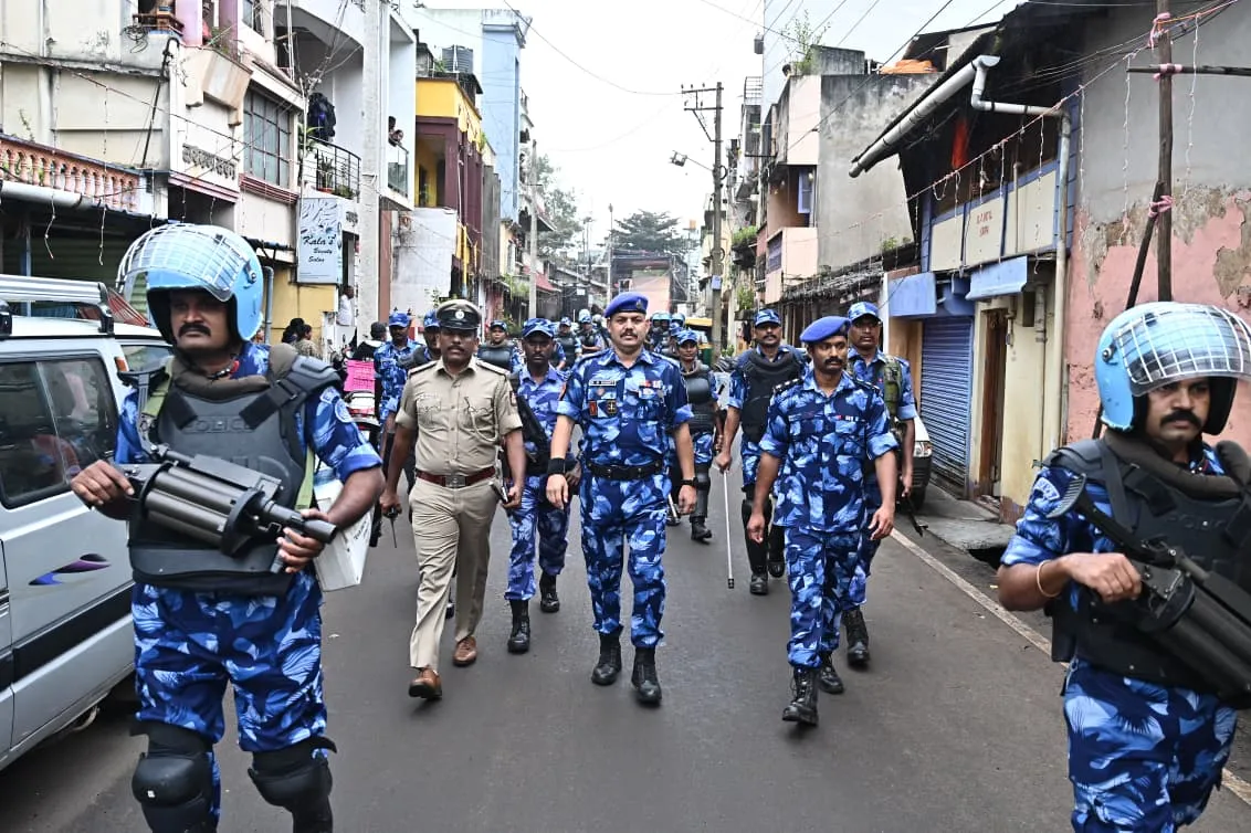 जलद कृती दलाचे अधिकारी व जवान, स्थानिक पोलीस या पथसंचलनात सहभागी झाले होते. राणी चन्नम्मा चौकापासून पथसंचलनाला सुरुवात झाली. चव्हाट गल्ली, दरबार गल्ली, खडेबाजार, जालगार गल्ली, खडक गल्लीमार्गे हे पथसंचलन मार्केट पोलीस स्थानकात पोहोचले. तेथे समारोप करण्यात आला. उत्सवाच्या काळात कोणत्याही अन्य धर्मियांच्या भावना दुखावतील, त्याला धक्का पोहोचेल, अशी कृती कोणीही करू नये. शांततेने व उत्साहाने उत्सव साजरा करावा. पोलीस दलाच्यावतीने ठरवून देण्यात आलेल्या सर्व नियमांचे पालन करावे, कायदा व सुव्यवस्था परिस्थिती अबाधित ठेवण्यासाठी पोलीस दलाला सहकार्य करावे, असे आवाहन पोलीस आयुक्त भूषण गुलाबराव बोरसे यांनी केले आहे.