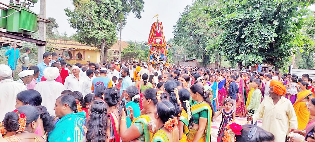 यावेळी काँग्रेसचे युवा नेतृत्व मृणाल हेब्बाळकर आणि भाजपा नेते धनंजय जाधव यांच्या हस्ते श्रीफळ वाढवून पूजन करण्यात आले. रथयात्रा संपूर्ण गावभर फिरविण्यात आली.