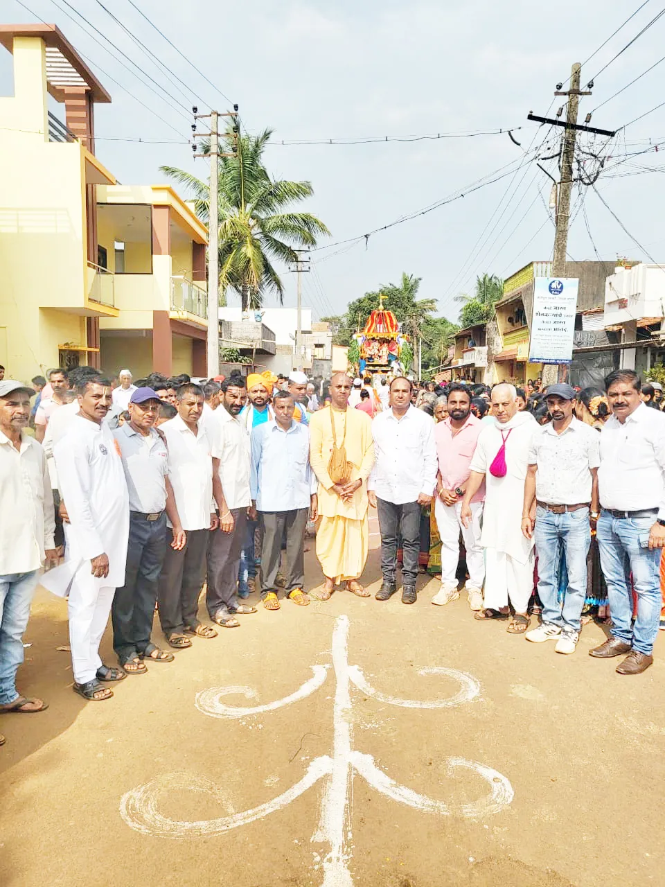 यावेळी सर्व गावकरी महिला मंडळे, युवकवर्ग मोठय़ा संख्येने रथयात्रेमध्ये सहभागी झाले होते. संपूर्ण गावभर भगव्या पताका आणि सुरेख रांगोळय़ा काढण्यात आल्या होत्या. प्रत्येकाच्या कपाळी अष्टगंध लावण्यात आले होते. मराठमोळय़ा वेशात महिलांनी पेहराव केला होता. संपूर्ण गाव हरे रामा हरे कृष्णाच्या जयघोषात दुमदुमून गेले होते. सर्व आबालवृद्धही नाच-गाण्यात दंग झाले होते. रात्री 7 ते 8 पर्यंत प्रवचन, रात्री 8 ते 8.45 नाटय़लिला 8.46 ते 9 आरती, रात्री 9 वाजता महाप्रसादाने कार्यक्रमाची सांगता झाली.