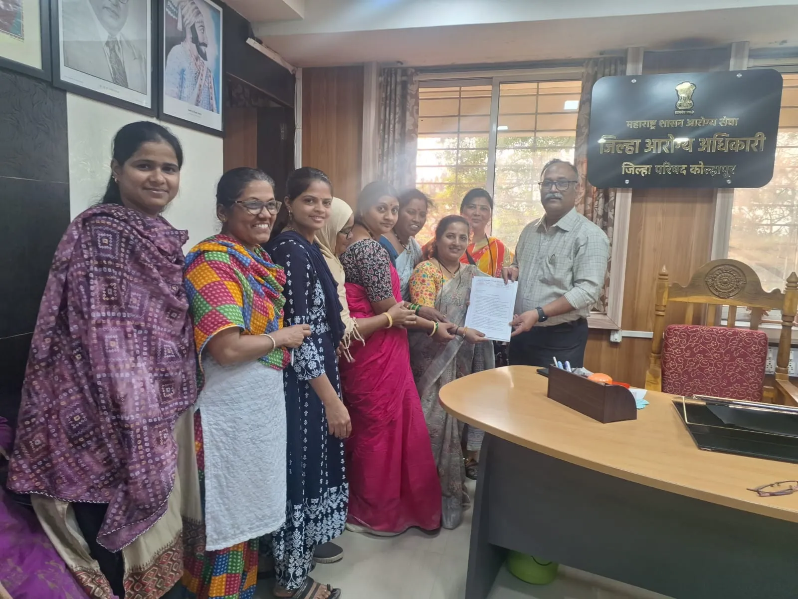 दरम्यान संघटनेच्या राज्य समन्वयक नेत्रदिपा पाटील यांच्या नेतृत्वाखाली शिष्टमंडळाच्या वतीने निवेदन देण्यात आले. यावेळी सुजाता पाटील, स्वाती पाटील, मंदाकिनी कोडक, माया पाटील, पद्मा दुर्गुळे, छाया तिरुके, शबाना पाटणकर, काजल पटेल, स्नेहा तोरस्कर राणी खोत,अनिता रावण आदिनी चर्चेत सहभाग घेतला. सकारात्मक चर्चेतून प्रलंबित प्रश्न सोडविण्याबाबत निर्णय घेण्यात आला. जिल्हा आरोग्य अधिकारी डॉ पिंपळे यांनी आशा गटप्रवर्तक कर्मच्रायांच्या अडचणी समजून घेतल्या.