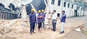 नावगे क्रॉस येथील स्नेहम टेपिंग सोल्युशन्स प्रा. लिमिटेड या कारखान्याला मंगळवारी रात्री साडेआठच्या दरम्यान शार्टसर्किटने आग लागली. या आगीत संपूर्ण कारखाना जळून खाक झाला. या अग्नितांडवामध्ये मार्कंडेयनगर येथील एका तरुण कामगाराचा जळून दुर्दैवी मृत्यू झाला तर तिघेजण जखमी झाले आहेत. बुधवारी सकाळी तब्बल 15 तासांच्या प्रयत्नानंतर आग विझविण्यात आली. गुरुवारी सकाळी या जळलेल्या कारखान्यातील भिंती व लोखंडी साहित्य जेसीबीच्या साहाय्याने हटविण्याचे कामकाज युद्धपातळीवर सुरू होते. गुरुवारी सकाळी अग्निशमन दलाचे शशीधर निलगार यांनी कारखान्याला पुन्हा भेट देऊन पाहणी केली व आपल्या सहकाऱ्यांना काही सूचना केल्या. या ठिकाणी हुबळी येथील चिफफायर ऑफिसर रविप्रसाद व इन्चार्ज रिजनल फायर चंद्रशेखर भंडारी हे ठाण मांडून होते. त्यांच्या मार्गदर्शनाखाली साहित्य हटविण्याचे कामकाज सुरू होते.