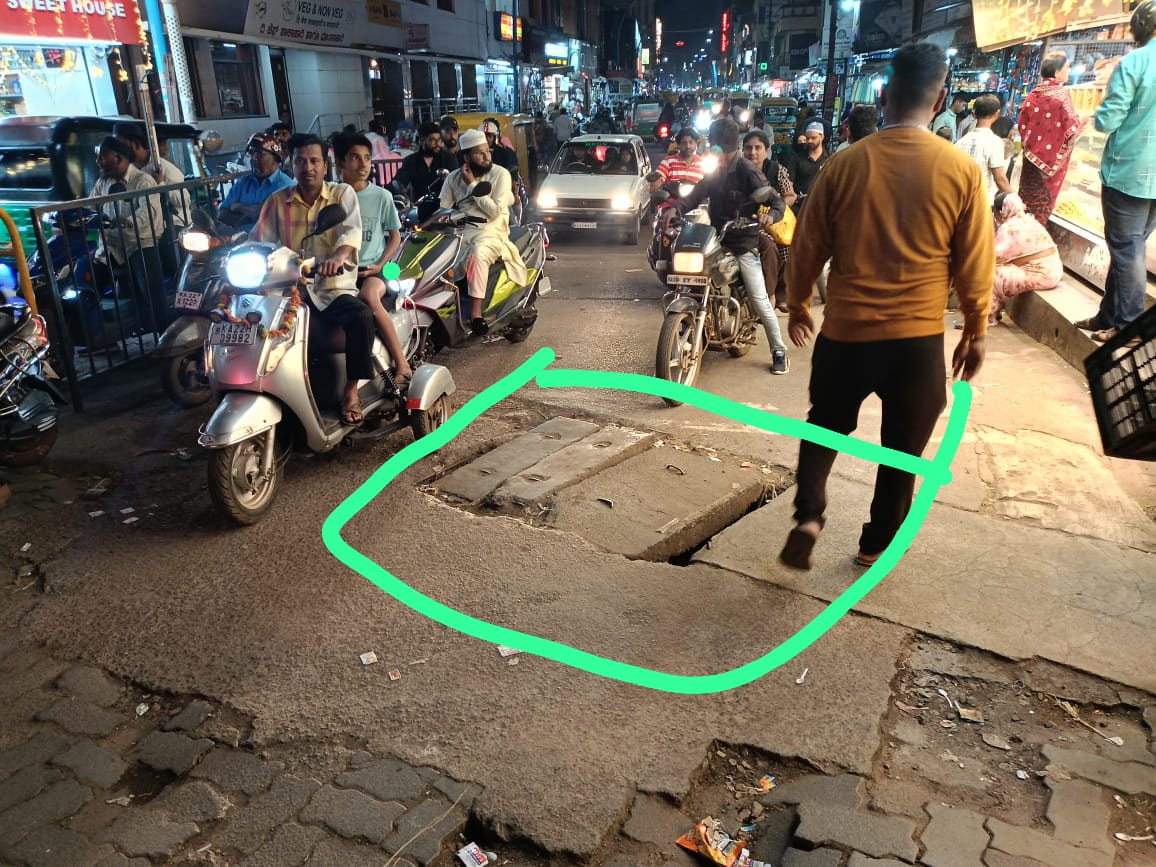 बेळगाव : खडेबाजार येथील गोकुळ पुरोहित स्वीटमार्टजवळील रस्त्याची अत्यंत दुरवस्था झाली आहे. याठिकाणी दुचाकी, चारचाकी चालक, दिव्यांग यांना आणि पादचाऱ्यांनासुद्धा ये-जा करणे कठीण झाले आहे. हा भाग अत्यंत वर्दळीचा असून येथे अनेक दुकाने आणि विविध व्यवसाय असल्याने सतत लोकांची ये-जा सुरू असते. रस्त्याची अवस्था पाहिल्यास लहानसहान अपघात होत आहेत. रात्रीच्यावेळी जर वीजपुरवठा खंडित झाला तर मोठा अपघात होण्याची शक्यता नाकारता येत नाही. नागरिकांनी याबाबत वारंवार महानगरपालिकेला कळविले आहे. परंतु याकडे कानाडोळा केला आहे. तरी कोणताही अनर्थ घडण्यापूर्वी मनपा या रस्त्याची दुरुस्ती करेल का?, असा प्रश्न निर्माण झाला आहे