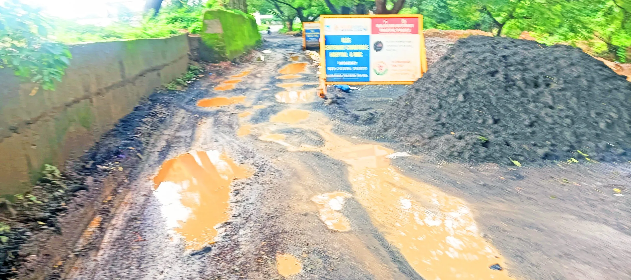 भुयारी मार्गासाठी खोदण्यात आलेल्या जमिनीमुळे पावसाचे पाणी साचल्याने रस्ता खचला आहे. कंत्राटदाराने तात्पुरती डागडुजी करून रस्ता खचण्यापासून बचाव केला असला तरी हा रस्ता केंव्हाही खचून वाहतुकीसाठी रस्ता बंद होऊ शकतो. तसेच फाटकाच्या दोन्ही बाजूकडील जवळपास दीड कि. मी. रस्ता पूर्णपणे उद्ध्वस्त झाला असून संपूर्ण रस्ता खड्ड्यांनी व्यापला आहे. त्यामुळे रस्त्याचे अस्तित्वच नाहीसे झाले आहे. या रस्त्यावरुन असोगा, मन्सापूर, कुटिन्होनगर, भोजगाळी, मणतुर्गा यासह इतर गावांसाठी मोठ्या प्रमाणात संपर्क साधला जातो. त्यामुळे या रस्त्यावरुन दुचाकी आणि चारचाकींची मोठ्या प्रमाणात वर्दळ असते. परंतू रेल्वे प्रशासनाच्या भोंगळ कारभारामुळे नागरिकांना नाहक त्रास सहन करावा लागत आहे.
