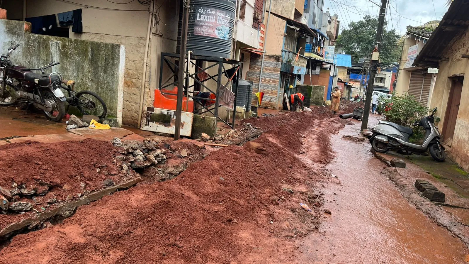 बेळगाव : 24 तास पाणीपुरवठा योजनेसाठी एलअँडटीकडून खोदकाम करण्यात आल्याने गवळी गल्लीत चिखलाचे साम्राज्य निर्माण झाले आहे. पावसात खोदकाम हाती घेतल्याने रहिवाशांना त्याचा फटका बसत असून चिखलामुळे निसरड झाली आहे. त्याचबरोबर या गल्लीतून ये-जा करणे आता कठीण झाले आहे. एलअँडटीकडून शहरात जलवाहिनी घालण्याचे काम सुरू आहे. गेल्या काही दिवसांपूर्वी गवळी गल्लीत खोदकाम करून पाईपलाईन घातली जात आहे. मात्र, झालेल्या मुसळधार पावसामुळे चिखल निर्माण झाला असून नागरिकांना ये-जा करणे अवघड झाले आहे. पाईप घातल्यानंतर तातडीने चर बुजविण्याऐवजी खोदलेली माती तशीच रस्त्याकडेला ढीग मारून ठेवली आहे. गुरुवारी दुपारी झालेल्या पावसामुळे मोठ्या प्रमाणात चिखल निर्माण झाला असल्याने या कामाचा फटका रहिवाशांना सहन करण्याची वेळ आली आहे. त्यामुळे तातडीने सदर काम पूर्ण करण्यात यावे.