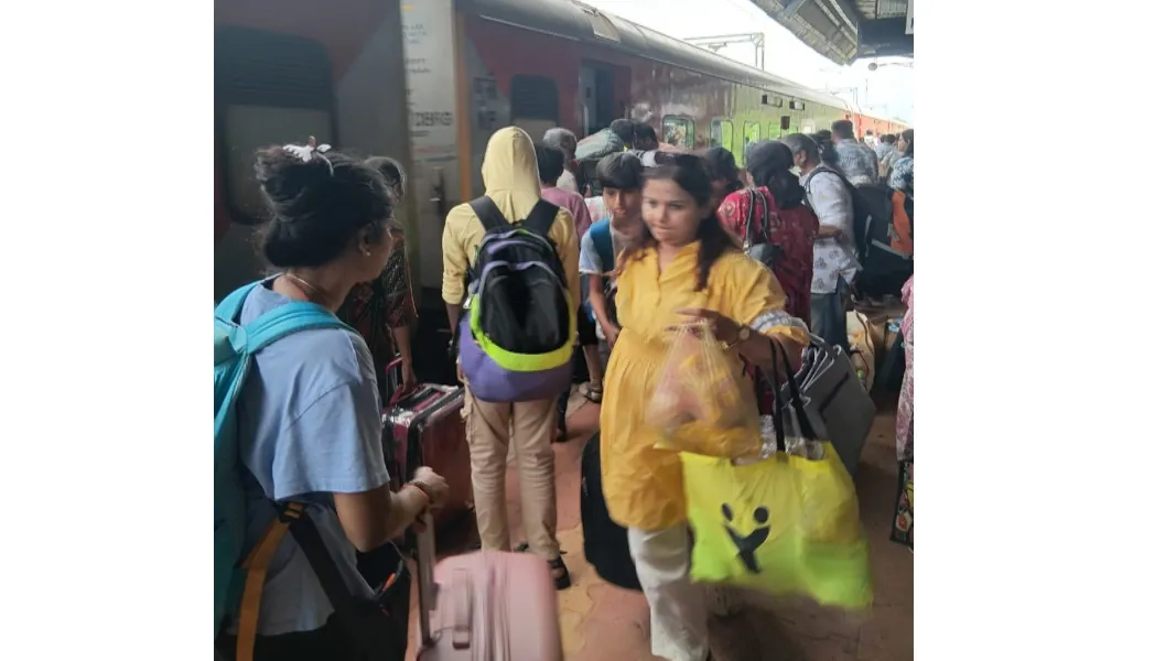 मळगाव : रेल्वे स्थानकावर परतीच्या प्रवाशासाठी आलेले गणेशभक्त ( नीलेश परब )