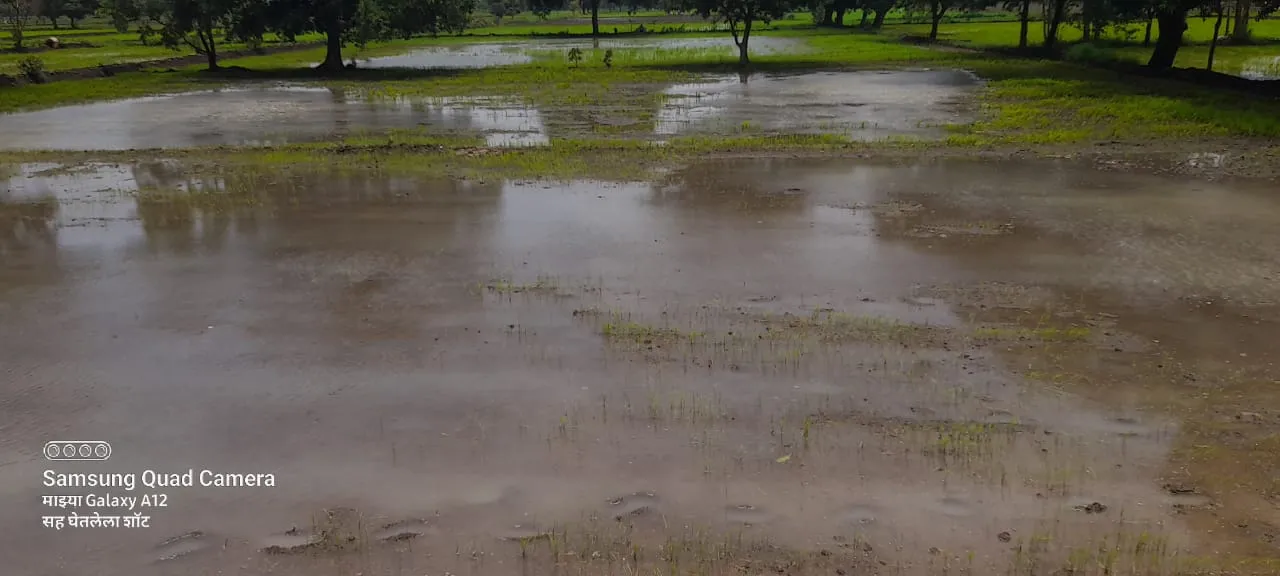 शेतकऱ्यांनी शेतातील पेरणीपूर्व मशागतीची कामे करतच भात पेरणीला सुरुवात करून घाईघाईने भातपेरणी पूर्ण केली. परंतु पेरणी केलेले भात पिकाचे रोप उगवलेले दिसत असतानाच पुन्हा पावसाने जोर केल्याने भाताची रोपे पाण्याखाली गेली. त्यामुळे या भागातील शेतकऱ्यांचे मोठे नुकसान झाले आहे. कारण गेल्या दोन दिवसांत पावसाचा ओघ कमी झाला तरी शिवारात पाणी मात्र म्हणावे तसे कमी झाले नाही. पावसाचे पाणी जास्त दिवस शेतात भरुन राहिल्याने भात पिकाचे रोप बारीक असल्यामुळे रोपाची वाढ खुंटली असून त्यामुळे भातपीक बाद होण्याच्या मार्गावर आहे. आतापासून एक आठवडा जरी पावसाने चांगली उघडीप दिली तर या भागातील भातपीक थोड्या प्रमाणात सुधारण्यास चालना मिळेल, नाहीतर शेतकऱ्यांचे मोठे नुकसान होणार आहे.