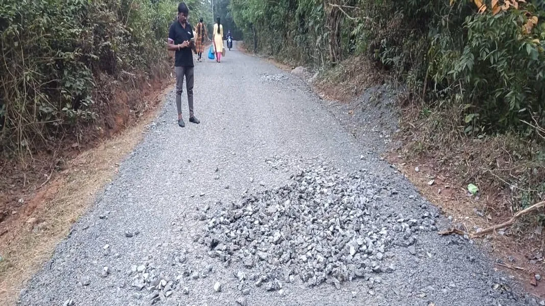 आरोस बाजार ते न्हावेलीला जाणाऱ्या रस्त्याचे डांबरीकरण करण्याचे काम दोन दिवसापूर्वी सुरू झाले. आणि दोन दिवसातच रस्त्यावरून जाणाऱ्या गाड्या यामुळे कंत्राटदाराने घातलेली खडी वर येवून रस्त्यात खड्डे पडले आहेत. रस्त्यावर पहिला थर लावताना डांबर न वापरल्यामुळे दोन दिवसातच रस्ता उखडला गेला आहे. याची पाहणी दांडेली गावाचे सामाजिक कार्यकर्ते श्री दुर्गेश मोरजकर, प्रदीप गावडे ,शंकर म्हाडगुत ,बाळा राम मोरजकर यांनी केली. तरी सार्वजनिक बांधकाम विभाग याची दखल घेवून योग्य ती कारवाई करावी अशी मागणी होत आहे.
