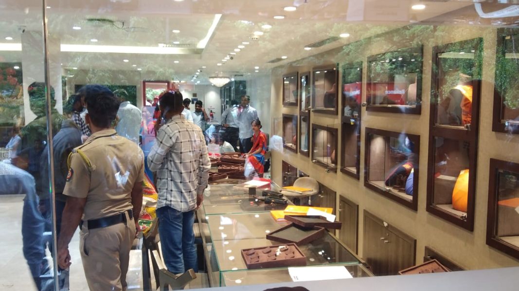 दरोडेखोरांनी दुकानातील कर्मचाऱ्यांना बांधून घातले.दुकानातील सर्व सोने आणि हिरे लुटले आहेत. यावेळी एका ग्राहकाने दुकानातून पलायन करण्याचा प्रयत्न केला. यावेळी ग्राहकाच्या दिशेने दरोडेखोरांनी गोळीबार केला.तो थोडक्यात बचावला.मात्र शोरुमच्या तळमजल्यामध्ये पडून जखमी झाला आहे.दरोडेखोरांचा माग काढण्यासाठी श्वानपथक पाचारण करण्यात आले परंतु दुकानाबाहेर श्वान घुटमळले.दरम्यान, दरोडेखोरांच्या मागावर स्थानिक गुन्हे अन्वेषणची पथक रवाना करण्यात आली आहेत.