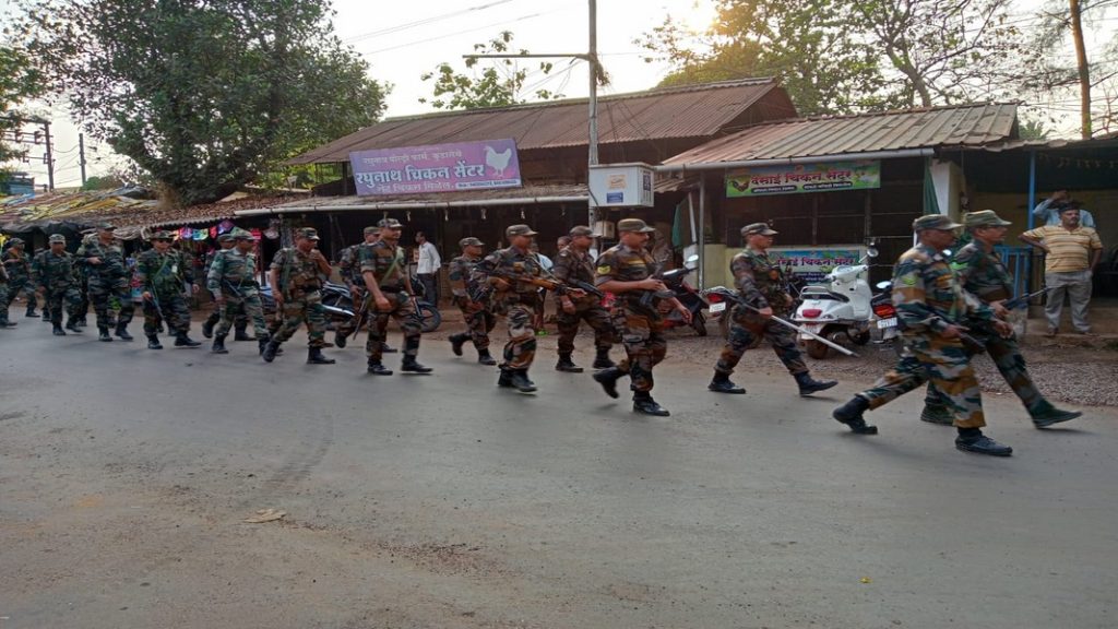 साटेली-भेडशी येथे लोकसभा निवडणुकीच्या पार्श्वभूमीवर दोडामार्ग पोलीस ठाण्याचे अधिकारी व अंमलदार तसेच त्रिपुरा राज्याच्या रिझर्व्ह फोर्सने संचलन केले. येथील बाजारपेठेत सोमवारी सायंकाळी ५ वाजण्याच्या सुमारास रूट मार्च काढण्यात आला. ७ मे रोजी होणाऱ्या मतदाना दिवशी मतदारांनी निर्भयपणे मतदान करावे यासाठी हे संचलन करण्यात आले. यावेळी त्रिपुरा राज्याच्या रिझर्व्ह फोर्सचे जवान, दोडामार्ग पोलीस निरीक्षक निसर्ग ओतारी यांचा समावेश होता.