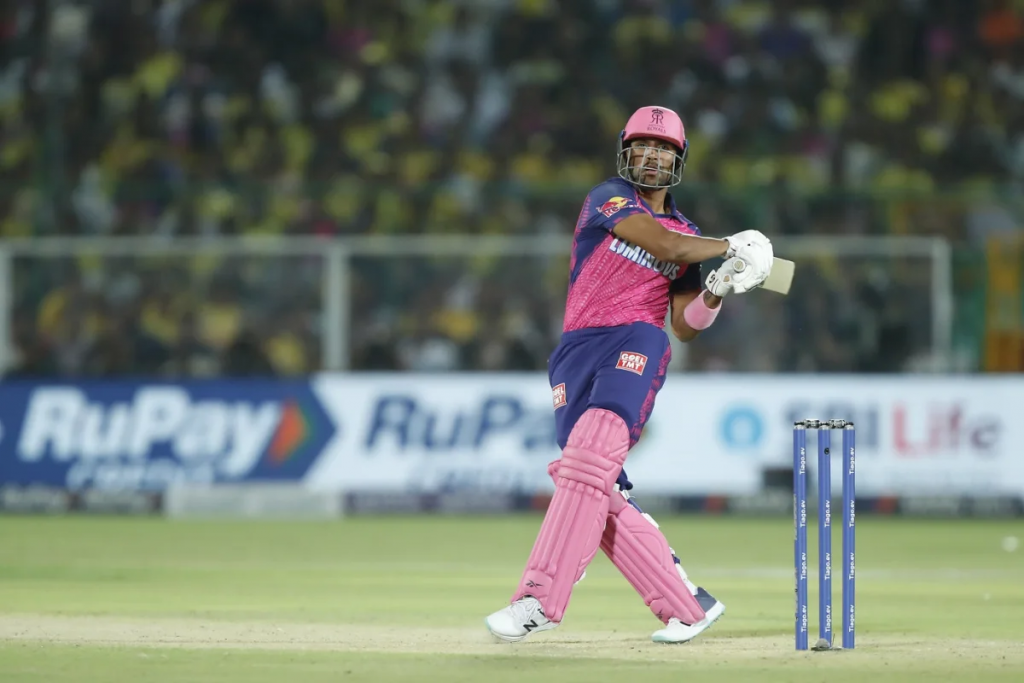 प्रथम फलंदाजी निवडल्यानंतर सलामीस आलेल्या जैस्वालने प्रारंभापासूनच आक्रमण करीत चौफेर फटकेबाजी केली. त्याने 43 चेंडूत 8 चौकार, 4 षटकारांची आतषबाजी करीत 77 धावा फटकावल्या. नंतर पडिक्कल (13 चेंडूत नाबाद 27) व ध्रुव जुरेल (15 चेंडूत 34) यांनी अखेरच्या टप्प्यात फटकेबाजी करीत 48 धावांची भर घातली. येथील सवाई मानसिंग स्टेडियमवरील त्यांनी नोंदवलेली ही सर्वोच्च धावसंख्या आहे. जैस्वालने आकाश सिंगला विशेष टार्गेट केले होते. त्याच्या दोन षटकांतच तब्बल 32 धावा वसूल केल्या गेल्या. त्याच्या पहिल्याच षटकात जैस्वालने 3 चौकार ठोकले. सामन्यातील पहिला चेंडू त्याने कव्हरच्या दिशेने फटकावला, त्यानंतरचे दोन चेंडू त्याने डीप एक्स्ट्रा कव्हर व डीप मिडविकेटच्या दिशेने पिटाळले. नंतर आकाशच्या दुसऱ्या षटकांत त्याने 18 धावा फटकावल्या. या षटकात त्याने 3 चौकार व एक षटकार लगावला. तुषार देशपांडे (42 धावांत 2 बळी) व आकाश सिंग महागडे ठरल्यानंतर चेन्नईचा कर्णधार एमएस धोनीने महीश थीक्षणाचा फिरकी मारा सुरू केला. त्याने पहिल्या स्पेलमध्ये चांगली गोलंदाजी केली. दरम्यान जैस्वालने 26 चेंडूत आपले अर्धशतक पूर्ण केले. नंतर जोश बटलरने फटकेबाजी करताना काही चौकार मारले. जैस्वाल व जोश या जोडीने राजस्थानला 86 धावांची भक्कम सलामी दिली. जडेजाने बटलरला बाद करून ही जोडी फोडली. बटलरने 21 चेंडूत 4 चौकारांसह 27 धावा काढल्या. या बळीनंतर चेन्नईच्या गोलंदाजांनी राजस्थानच्या फलंदाजांवर बऱ्यापैकी अंकुश ठेवताना काही झटपट बळीही मिळविले. तुषार देशपांडेने दुसऱ्या स्पेलमध्ये कर्णधार संजू सॅमसन (17) व जैस्वालला यांचे बळी मिळविले. एकाच षटकात त्याने हे दोन्ही बळी मिळविले. यावेळी 14 व्या षटकात 3 बाद 132 अशी राजस्थानची स्थिती होती. थीक्षणाने नंतर बिग हिटर शिमरॉन हेटमायरला 8 धावांवर त्रिफळाचीत केले. जुरेल व पडिक्कल यांनी 20 चेंडूतच 48 धावा फटकावत संघाला दोनशेच्या टप्प्यावर आणून ठेवले. जुरेल शेवटच्या षटकात बाद झाला. उर्वरित चार चेंडूत 8 धावा फटकावत पडिक्कलने संघाला दोनशेचा टप्पा गाठून दिला. पडिक्लकने आपल्या खेळीत 5 चौकार तर जुरेलने 3 चौकार, 2 षटकार मारले. तुषार देशपांडेने 2, थीक्षणा व जडेजा यांनी एकेक बळी मिळविला.