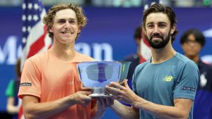 ऑस्ट्रेलियाच्या मॅक्स पर्सेल व जॉर्डन थॉम्पसन यांनी पुरुष दुहेरीच्या अंतिम लढतीत जर्मनीच्या दहाव्या मानांकित केव्हिन क्रॅवीट्झ व टिम प्युट्झ यांच्यावर 6-4, 7-6 (7-4) अशी मात केली. जुलैमध्ये झालेल्या विम्बल्डन स्पर्धेत या जोडीला जेतेपदाच्या लढतीत तीन मॅचपॉईंट्सचा लाभ घेता न आल्याने उपविजेतेपदावर समाधान मानावे लागले होते. या सातव्या मानांकित जोडीला तीन चॅम्पियनशिप पॉईंट्सची गरज लागली. 1996 नंतर ऑस्ट्रेलियन जोडीने ही स्पर्धा जिंकण्याची ही पहिलीच वेळ आहे. 1996 मध्ये टॉड वूडब्रिज व मार्क वूडफोर्ड यांनी ही स्पर्धा जिंकली होती. पर्सेलचे हे दुहेरीतील एकूण दुसरे ग्रँडस्लॅम जेतेपद आहे. याआधी 2022 मध्ये त्याने मॅथ्यू एब्डनसमवेत जेतेपद पटकावले होते. थॉम्पसनचे मात्र हे पहिलेच ग्रँडस्लॅम जेतेपद आहे.