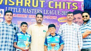 बेळगाव : युनियन जिमखाना आयोजित चंदन कुंदरनाड पुरस्कृत विश्रुत चिट्स लिटिल मास्टर्स लीग क्रिकेट स्पर्धेत उद्घाटन दिवशी साई फार्म स्पोर्ट्स क्लब संघाने के. आर. शेट्टी किंग्स संघाचा नऊ गड्यांनी तर जेवर गॅलरी डायमंड संघाने मॅक्स आनंद अकॅडमी संघाचा 35 धावांनी पराभव विजयी सलामी दिली. साईराज पोरवाल, मोहम्मद हमजा यांना सामनावीर पुरस्कार देण्यात आला. युनियन जिमखाना मैदानावर प्रारंभ झाला सकाळी झालेल्या उद्घाटन समारंभात प्रमुख पाहुणे तिप्पणा कुंदरनाड, लक्ष्मी कुंदरनाड यांच्या हस्ते खेळपट्टीचे पूजन करत स्पर्धेचे उद्घाटन करण्यात आले. यावेळी स्पर्धा पुरस्कर्ते चंदन कुंदरनाड विकास देसाई, आशिष चव्हाण युनियन जिमखाना अध्यक्ष प्रसन्न सुंठणकर, संचालक सुधाकर पाटणकर संघमालक मोहम्मद ताहीर सराफ, रोहित पोरवाल, प्रदीप शेरीगार, संगम पाटील, मिलिंद चव्हाण, महांतेश देसाई आदी मान्यवर उपस्थित होते.
