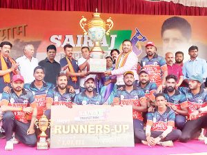 बेळगाव : आक्रमक फलंदाजी व उत्कृष्ट गोलंदाजीच्या जोरावर आपाप संघाने राहुल के आर शेट्टी किंग्स रायगड संघाचा 26 धावांनी पराभव करून साईराज चषकासह 1 लाख 61 हजार रुपयांचे बक्षीस पटकाविले. तर आपाप संघाच्या फरदीन काझीला अंतिम सामन्यातील सामनावीर व स्पर्धेतील मालिकाविराने गौरवताना दुचाकी वाहनाचे बक्षीस देऊन गौरवण्यात आले. व्हक्सिन डेपो मैदानावर साईराज स्पोर्ट्स क्लब आयोजित निमंित्रतांच्या साईराज चषक क्रिकेट स्पर्धेच्या अंतिम सामन्यात केआर शेट्टी किंग्ज रायगड संघाने नाणेफेक जिंकून प्रथम क्षेत्रक्षण स्वीकारले. पहिल्या डावात प्रथम फलंदाजी करताना आपाप स्पोर्ट्सने 10 षटकात 5 गडी बाद 124 धावा केल्या. त्यात फरदीन काजीने 2 षटकार, 3 चौकारासह 35 धावा, कृष्णा गवळीने 5 चौकार व एक षटकारसह 34, तर प्रथमेशने एक चौकार व 3 षटकारासह नाबाद 24 धावा केल्या. राहुल केआर शेट्टी रायगड संघातर्फे इरफान व सत्यम यांनी प्रत्येकी दोन गडी बाद केले. प्रत्युत्तरादाखल खेळताना पहिल्या डावात राहुल के आर शेट्टी किंग्स रायगड संघाने 10 षटकात 2 गडी बाद 128 धावा करून चार धावांची आघाडी पहिला डावात मिळवली. त्यात सुनील चावरीने 6 षटकार व 2 चौकारासह 56 धावा करून अर्धशतक झळकविले. त्याला शाहिद शेखने 4 षटकार व 2 चौकारासह 30 तर थॉमस डायसने 3 षटकारासह नाबाद 29 धावा केल्या. आपापतर्फे नाझीर व धनंजय यांनी प्रत्येकी एक गडी बाद केला. दुसऱ्या डावात आपाप स्पोर्ट्सने प्रथम फलंदाजी करताना 10 षटकात 8 गडी बाद 111 धावा केल्या. त्यात फरदीन काजीने 5 षटकार व 2 चौकाŠसह 48 तर बबलू पाटील 6 षटकारासह नाबाद 44 धावा केल्या. के आर शेट्टी तर्फे इरफानने 4 तर सोम सिंगने 2 गडी बाद केले.
