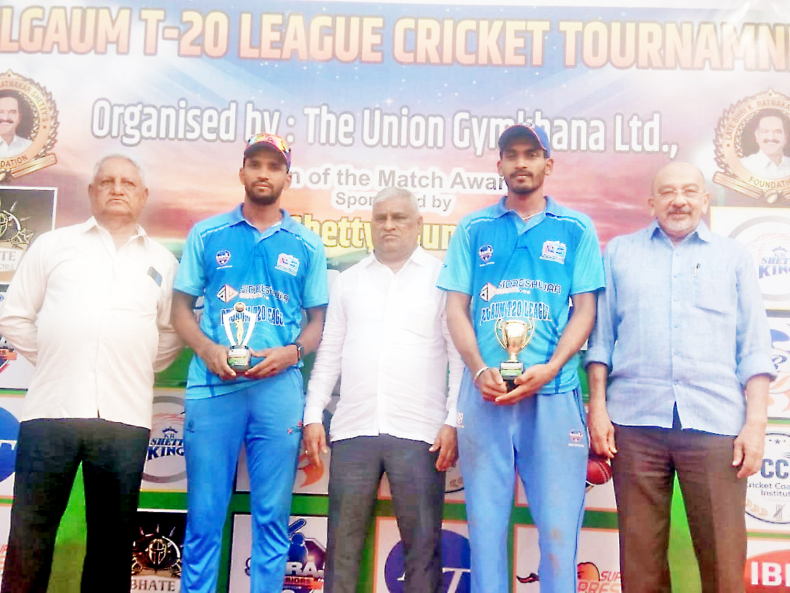 बेळगाव : युनियन जिमखाना आयोजित सिद्धेश्वर ग्रॅनाईट पुरस्कृत सिद्धेश्वर ग्रॅनाईट चषक बेळगाव टी-20 साखळी क्रिकेट स्पर्धेत साईराज वॉरियर्स इंडियन बॉइज हिंडलगा संघाचा व रोहन ट्रेडर्स बीएससी संघाने पोद्दार रॉयल्स सीसीआय संघाचा पराभव करून प्रत्येकी 2 गुण मिळविले. रब्बानी दफेदार (साईराज) राहुल नाईक (बीएससी) याना सामनावीर पुरस्कार देण्यात आला. युनियन जिमखाना मैदानावर खेळविण्यात आलेल्या पहिला सामन्यात साईराज वॉरिअर संघाने इंडियन बॉइज हिंडलगा संघाचा 29 धावांनी पराभव करत आपल्या तिसऱ्या विजयाची नोंद केली. साईराज वॉरियर्स संघाने प्रथम फलंदाजी करताना 20 षटकात सर्व बाद 147 धावा केल्या. त्यात कर्णधार ओमकार वेर्णेकर 4 चौकार व 2 षटकारांसह व केदारनाथ उसुलकर 2 षटकार एक चौकारांसह प्रत्यकी 33, नंदकुमार मलतवाडकरने 18, सुधन्वा कुलकर्णीने 17 धावा केल्या. इंडियन बॉइज हिंडलगा तर्फे सुधीर गवळी व सुमित करगावकर यांनी प्रत्येकी 3 तर सुशांत कोवाडकरने 2 गडीबाद केले. प्रत्युत्तरादाखल खेळताना इंडियन बॉईज संघाचा डाव 19.4 षटकात 118 धावात आटोपला. त्यात कावीश मुक्कण्णावरने 6 चौकार व एक षटकारांसह 39, शिवम नेसरीकरने 23 धावा केल्या. साईराज तर्फे रब्बानी दफेदारने 18 धावांत 4, संतोष सुळगे-पाटीलने 14 धावांत 3, सुधन्वा कुलकर्णीने 2 गडी बाद केले.