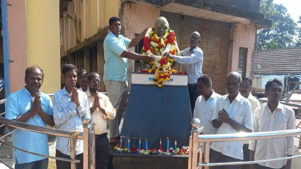 यावेळी किशोर जाधव यांनी डॉ बाबासाहेब आंबेडकर यांनी देशातील सर्व बहुजन, वंचित, पिडित स्त्री, पुरुष, धर्म, जातीसाठी महान कार्य केले असून याचे भान सर्वांनी ठेवण्याचे आवाहन केले. यावेळी राजन निगुडकर, दीपक जाधव, पांडुरंग जाधव, मोरेश्वर जाधव, गणेश उर्फ राज जाधव, धोंडी जाधव, शशीकांत नेमळेकर, भावेश नेमळेकर, भैय्या नेमळेकर, न्हानु जाधव, राजन कासले अशोक कांबळे, शांताराम कासले, अनिल कासले, अजित न्हावेलकर, बिरबल चौगुले, करण चलवादी, भगवान तारी, कांचन जाधव, संगिता जाधव, अंकुश परब, योगेश परब, मंगेश न्हावेलकर, प्रकाश जाधव, विष्णू जाधव केशव जाधव, शांताराम कासकर, नितीन राठये, विक्रम कदम, रामचंद्र कदम, रसिका कदम, किरण कदम, भगवान कदम, अनिरुद्ध पवार, बबन कांबळे, देविदास कदम आदी उपस्थित होते