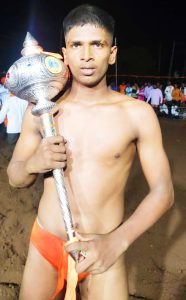 बहाद्दरवाडी : बाल हनुमान कुस्ती संघटना किणये यांच्यावतीने खास चौराशी देवी यात्रेनिमित्त गुऊवारी सायंकाळी सरस्वती हायस्कूल जवळील शिवारात भव्य जंगी कुस्ती मैदानात कंग्राळीच्या कामेश पाटीलने सांगलीच्या महाराष्ट्र चॅम्पियन प्रदीप ठाकूरला घुटणा डावावर चीत करून तर रोहित पाटील कंग्राळीने मोहन नारे वर प्रेक्षणिय विजय मिळविला. मैदानात बालकांच्या तसेच नामवंत मल्लांच्या 30 हून अधिक रंगतदार कुस्त्या झाल्या. आखाड्यात प्रथम क्रमांकची कुस्ती कर्नाटक चॅम्पियन कामेश पाटील विऊद्ध महाराष्ट्र चॅम्पियन प्रदीप ठाकूर ही कुस्ती माजी जिल्हा पंचायत सदस्य सुरेश डुकरे, ग्रामपंचायत सदस्य माऊती डुकरे, महेश डुकरे, रामलिंग गुरव, निवृत्ती डुकरे, पुंडलिक दळवी, लक्ष्मण बामणे, पिराजी मुचंडीकर, मोनापा पाटील, प्रभाकर पाटील यांच्या हस्ते लावण्यात आली. प्रारंभी दोघांनी एकमेकांची ताकद आजमावली. सांगलीच्या प्रदीप ठाकूरने एकेरी पट काढून कामेशवरती कब्जा मिळविला. 10 व्या मिनिटावरती कामेशने एकेरी पट काढून प्रदीपवर कब्जा मिळवित मानेचा कस काढून मजबूत घुटण्याची पकड मिळविली व घुटणा डावावर चीत करुन उपस्थित कुस्तीशौकिनांची मने जिंकली. कुस्तीसाठी पंच म्हणून महेश डुकरे यांनी काम पाहिले. दुसऱ्या क्रमांकाची कुस्ती कंग्राळीच्या रोहित पाटील विऊद्ध महाराष्ट्र चॅम्पियन सांगलीचा मोहन नारे ही कुस्ती ज्ञानेश्वर सोसायटीचे चेअरमन व सर्व संचालक यांच्या हस्ते लावण्यात आली. 5 व्या मिनिटाला रोहितने पायाला चाट मारुन मोहनवर ताबा मिळविला. मात्र मोहनने त्यातून सुटका करून घेतली. लागलीच रोहितने एकेरी पट काढून मोहनवर ताबा मिळवित 13 व्या मिनिटावर रोहितने मोहनला चीत करून विजय मिळविला. पंच म्हणून सुरेश डुकरे यांनी काम पाहिले.