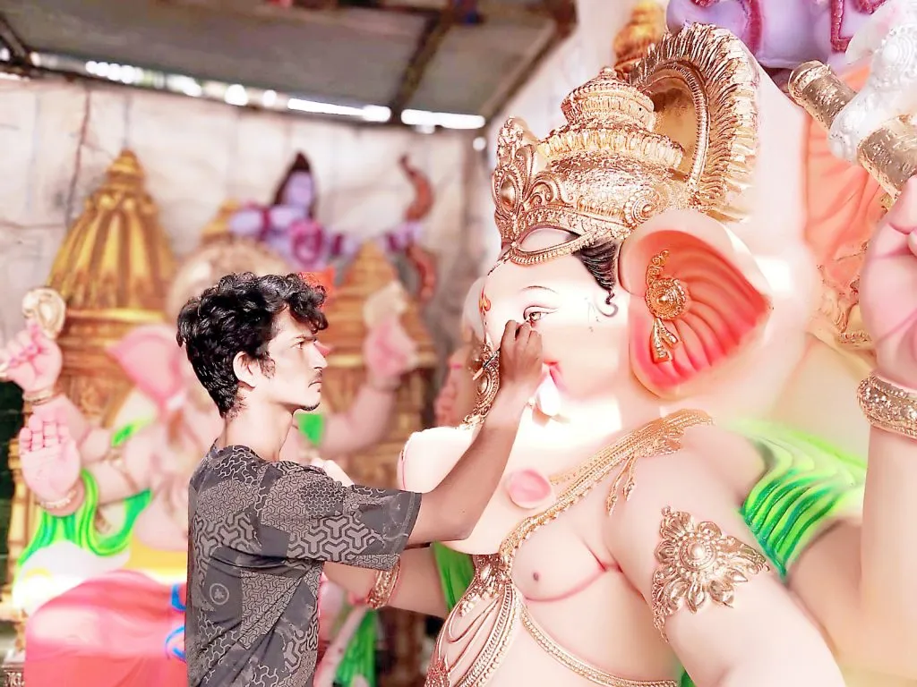 या मूर्तींवर सोमवारी शेवटचा हात फिरविण्यात येत होता. काही मूर्तींचे रंगकाम शेवटच्या टप्प्यात होते. मंगळवारी व बुधवारी मंडळांचे कार्यकर्ते मूर्ती घेऊन जाणार असल्याने लगबग सुरू आहे.