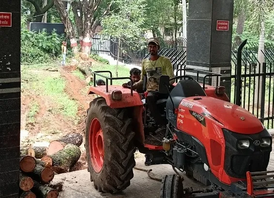 सर्वात उंच झेंडा उभारण्यात येणार : ट्रक्टरच्या सहाय्याने काढल्या झाडांच्या फांद्या