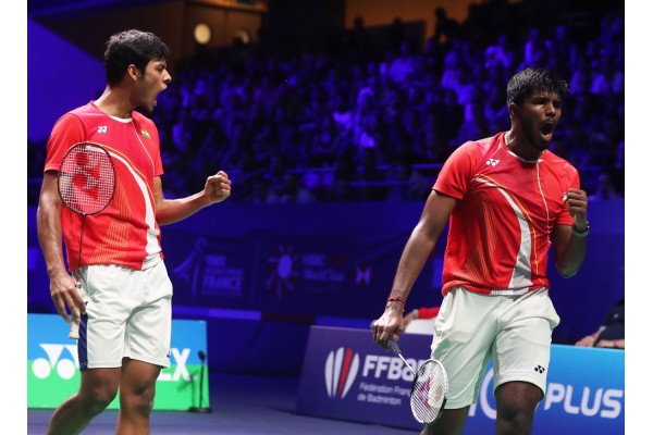 यंदाच्या हंगामात दमदार फॉर्ममध्ये असलेल्या सात्विकसाईराज व चिराग शेट्टी जोडीने उपांत्य फेरीत शानदार खेळाचे प्रदर्शन साकारले. भारतीय जोडीने पहिल्या गेममध्ये शानदार सुरुवात केली पण त्यांना हा गेम 18-21 असा गमवावा लागला. पहिला गेम गमावल्यानंतर मात्र भारतीय जोडीने दुसऱ्या गेममध्ये जोरदार पुनरागमन केले. सुरुवातीपासून आक्रमक खेळताना भारतीय जोडीने हा गेम 21-19 असा जिंकला व सामन्यात 1-1 अशी बरोबरी साधली. यानंतर तिसरा व निर्णायक गेमही चांगलाच चुरशीचा झाला. या गेममध्ये दोन्ही जोड्यांमध्ये एक एक गुणासाठी चांगलाच संघर्ष पहायला मिळाला. एकवेळ सात्विकसाईराज-चिराग व मिन ह्याक-सेऊंग यांच्यात 18-18 अशी बरोबरी होती. पण मोक्याच्या क्षणी खेळ उंचावत भारतीय जोडीने हा गेम 21-18 असा जिंकत हा सामना आपल्या नावे केला व अंतिम फेरीतील स्थान निश्चित केले. आता, त्यांची विजेतेपदासाठी लढत मलेशिया व इंडोनेशिया यांच्यातील विजेत्यांशी होईल.