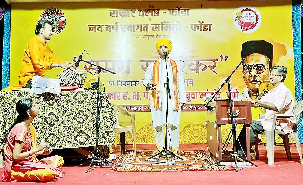 फोंडा : हिंदू राष्ट्राच्या निर्मितीसाठी ज्या विभूतीनी आपल्या प्राणांचे बलिदान दिले त्यामध्ये वीर सावरकरांच्या समर्पित जीवनाचा उल्लेख अनिवार्य आहे. स्वत:च्या घरादारावर तुलसीपत्र ठेवून देशाच्या रक्षणासाठी दिर्घकाळ तुरुंगवास आणि परकीय सत्तेच्या दहशतीखाली आपल्या आयुष्याचा बहुतांश काळ खर्ची घातलेले विनायक दामोदर सावरकर हे सच्चे राष्ट्रभक्त होते. भारतमातेवर निस्सिम प्रेम आणि मनोमन श्रद्धा ठेवून त्यांनी देशाचा आणि पर्यायाने हिंदुत्वाचा खऱ्या अर्थाने पुरस्कार केला. परिणामी आज स्वातंत्र्याची गोड फळे आपण चाखतो त्याचे श्रेय कृतज्ञतापूर्वक अशा देशभक्तांना देणे हे आपले कर्तव्य आहे, असे प्रतिपादन प्रख्यात राष्ट्रीय कीर्तनकार संदीप बुवा माणके यांनी केले. नववर्ष स्वागत समिती फोंडा आणि सम्राट क्लब फोंडा यांच्या संयुक्त विद्यमाने आयोजित करण्यात आलेल्या समग्र सावरकर या विषयावरील तीन दिवशीय आख्यानाच्या कार्यक्रमात ते बोलत होते. फोंडा येथील क्रांती मैदानावर आयोजित करण्यात आलेल्या या महोत्सवात त्यांनी वीर सावरकरांच्या व्यक्तिमत्त्वाच्या विविध पैलूंवर उजेड पाडला.