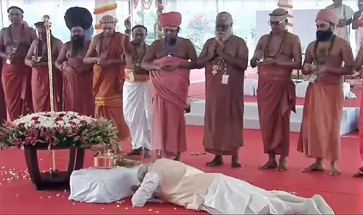 पंतप्रधान नरेंद्र मोदी यांच्या हस्ते देशाच्या नव्या संसद भवनाचे आज पारंपरिक पद्धतीने लोकार्पण करण्यात आले. या उद्घाटन सोहळय़ाची सुरुवात पूजेने झाली. PM मोदी आणि लोकसभा अध्यक्ष ओम बिर्ला या पूजेला बसले होते. या उद्घाटन कार्यक्रमाच्या सुरुवातीला तामिळनाडूच्या पुरोहितांनी वैदिक मंत्रोच्चारांमध्ये मोदींकडे राजदंड सुपूर्द केला. हे राजदंड हातात घेण्यापूर्वी पंतप्रधान नरेंद्र मोदींनी राजदंडाला दंडवत घातला. यानंतर त्यांनी लोकसभा अध्यक्ष ओम बिर्ला यांच्यासोबत नवीन संसद भवनात राजदंडाची स्थापना केली.