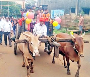 फुगे, गुलाबपुष्प देऊन विद्यार्थ्यांचे स्वागत : बैलगाडीतून आगमन : विद्यार्थ्यांचा आनंद द्विगुणित : प्रभात फेरींचे आकर्षण