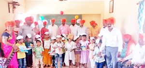 गांधी टोप्या परिधान करून विद्यार्थ्यांचे स्वागत