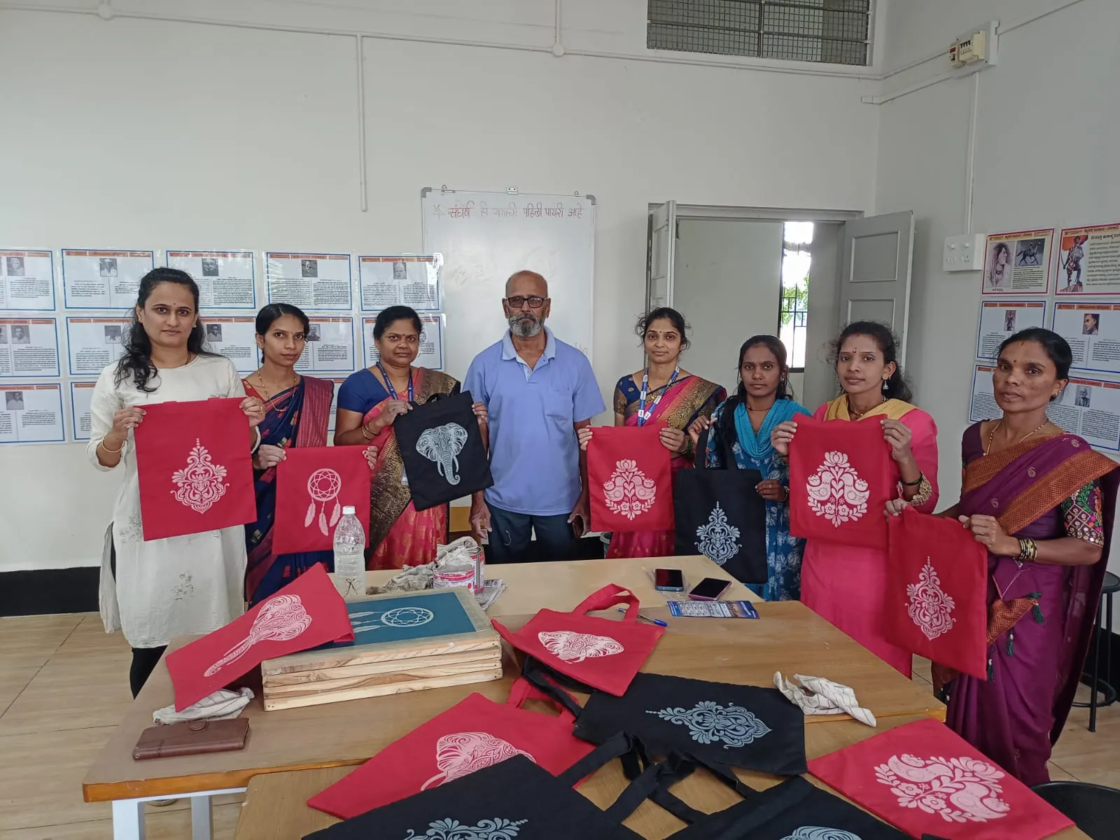 बेळगाव : लोककल्प फौंडेशनतर्फे खानापूर तालुक्यातील दत्तक घेतलेल्या 32 गावांमधील महिलांसाठी स्क्रिन प्रिटिंग प्रशिक्षण कार्यक्रमाचे आयोजन केले होते. ग्रामीण महिलांना रोजगारक्षम कौशल्ये देऊन आर्थिकदृष्ट्या सक्षम बनविण्याचा या उपक्रमाचा उद्देश आहे. हे प्रशिक्षण विजय साठे यांच्या मार्गदर्शनाखाली घेण्यात आले. ते स्क्रिन प्रिंटिंग क्षेत्रातील तज्ञ असून त्यांनी महिलांना प्रात्यक्षिकाच्या माध्यमातून छपाईच्या विविध तंत्रांची महिती दिली. यावेळी महिलांनी उत्साहाने सहभाग घेतला आणि विविध साहित्यावर आकर्षक डिझाईन तयार करून छपाई कशी करायची हे शिकले. या कौशल्याच्या माध्यमातून त्यांना लघु उद्योगांच्या स्वरुपात स्वत:चा व्यवसाय सुरू करण्याची आणि उत्पन्न मिळविण्याची संधी मिळाली आहे. लोकमान्य मल्टिपर्पज को-ऑप. सेसायटीचे अध्यक्ष डॉ. किरण ठाकुर यांच्या नेतृत्वाखाली फौंडेशन महिलांच्या कौशल्यविकासावर आणि शाश्वत उत्पन्ननिर्मितीच्या संधींवर सातत्याने भर देत आहे. त्याअंतर्गत या प्रशिक्षण कार्यक्रमाचे आयोजन करण्यात आले होते.