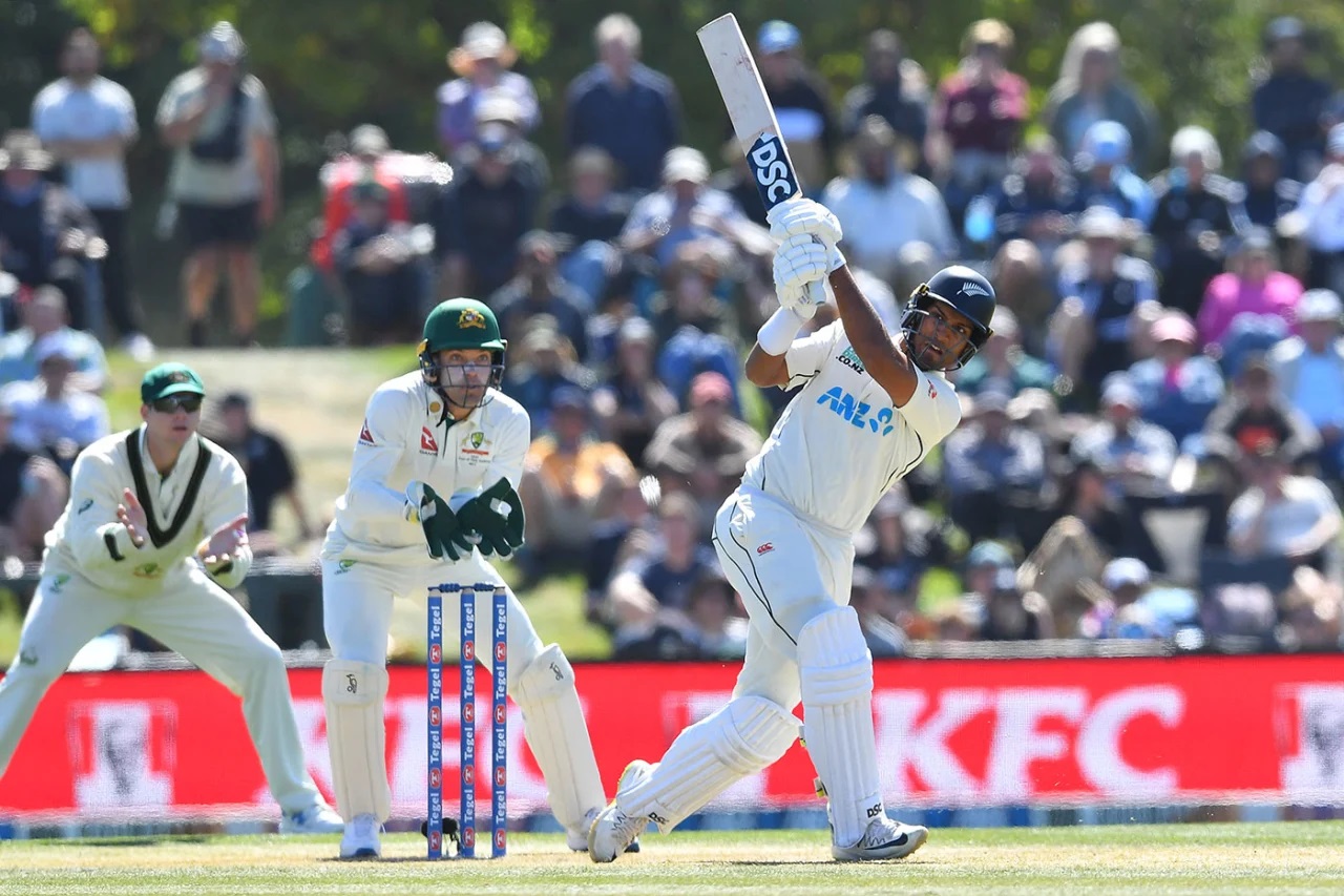 संक्षिप्त धावफलक – न्यूझीलंड प. डाव 162, ऑस्ट्रेलिया प. डाव 256, न्यूझीलंड दु. डाव 108.2 षटकात सर्व बाद 372 (लॅथम 73, विल्यम्सन 51, रचिन रवींद्र 82, मिचेल 58, ब्लंकेट 9, फिलिप्स 16, कुगलेजिन 44, हेन्री 16, अवांतर 22, कमिन्स 4-62, लियॉन 3-49, स्टार्क, हॅझलवूड, ग्रीन प्रत्येकी 1 बळी), ऑस्ट्रेलिया दु. डाव 24 षटकात 4 बाद 77 (स्मिथ 9, ख्वाजा 11, लाबुशेन 6, ग्रीन 5, हेड खेळत आहे 17, मार्श खेळत आहे 27, अवांतर 2, मॅट हेन्री 2-37, सीयर्स 2-22).