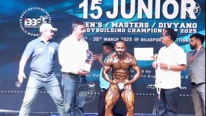 बेळगाव : छत्तीसगड येथे इंडियन बॉडीबिल्डींग अॅण्ड स्पोर्टस फेडरेशन आयोजित 15 व्या ज्युनिअर, मास्टर्स, दिव्यांग शरीरसौष्ठव स्पर्धेत झारखंडचा शिवचंद्रन सुनदी याने आपल्या पिळदार शरीराच्या जोरावर चॅम्पियन ऑफ चॅम्पियन्स हा मानाचा किताब पटकाविला. चॅम्पियन ऑफ चॅम्पियन पहिले उपविजेते मणिपूरच्या धनराज गुप्ताने तर जॅक्सन के ने दुसरे उपविजेतेपद पटकाविले. सांघिक गटात 295 गुणांसह मणिपूरने विजेतेपद, 240 गुणांसह महाराष्ट्राने उपविजेतेपद तर 195 गुणांसह पश्चिम बंगालने दुसरे उपविजेतेपद पटकाविले. मणिपूरच्या धनराज गुप्ताने उत्कृष्ट पोझरचा किताब पटकाविला.झारखंड येथे झालेल्या या शरीरसौष्ठव स्पर्धेत आयबीबीबीएफच्या मान्यतेनुसार खालील वजनी गटात स्पर्धा घेण्यात आल्या.