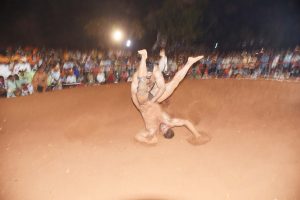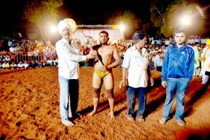 बेळगाव : छत्रपती शिवाजी क्रीडा कुस्ती संघटना पिरनवाडी आयोजित हजरत अन्सारी जंगली पिरबाबा उरुसानिमित्त आयोजित केलेल्या भव्य कुस्ती मैदानात डबल महाराष्ट्र केसरी शिवराज राक्षेने हरियाणाच्या सोनू कुमारला अवघ्या तिसऱ्या मिनिटात कुंद एकचाक डावावर चीत करुन उपस्थित 30 हजारहून अधिक कुस्ती शौकिनांची मने जिंकली. कुस्तीचे आश्रयदाते सतीश पाटील, रवी मुचंडीकर, सचिन गोरले, आप्पाजी मुचंडीकर, परशुरामभाऊ नंदीहळ्ळी, कृष्णा बिदले व छत्रपती शिवाजी संघटना पिरनवाडी आदी मान्यवरांच्या हस्ते डबल महाराष्ट्र केसरी शिवराज राक्षे व राष्ट्रीय चॅम्पियन हरियाणाचा सोनू कुमार ही प्रमुख कुस्ती लावण्यात आली. या कुस्तीत पहिल्याच मिनिटाला शिवराज राक्षेने एकेरी पट काढून सोनूला खाली घेतले. पण सोनूने त्यातून सुटका करुन घेतली. लगेच पुन्हा शिवराज राक्षेने एकेरी पट काढत सोनूकुमारला खाली घेत एकलांगी भरत सवारी घालून चीत करण्याचा प्रयत्न केला. पण ताकदिने मजबूत असलेल्या सोनू कुमारला फिरवणे कठीण गेले. त्यानंतर शिवराजने मानेवरचा कसा काढीत घुटण्यावरती फिरविण्याचा प्रयत्न केला. त्यातून सुटका करण्याचा प्रयत्न करीत असतानाच तिसऱ्या मिनिटाला शिवराज राक्षेने कुंद एकचाक मारीत सोनूकुमारला आसमान दाखवित उपस्थित कुस्तीशौकीनांची मने जिंकली.