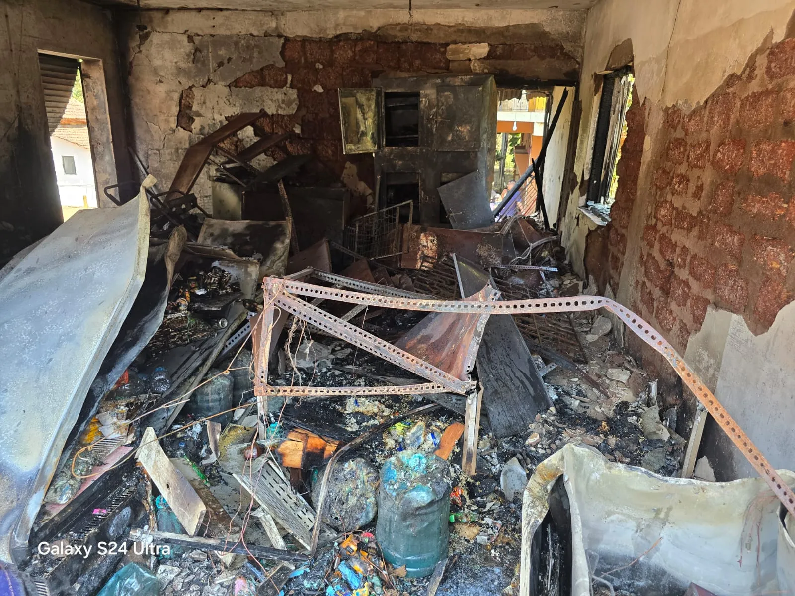 म्हापसा : कांदोळी सेबेस्तियानवाडा येथील पॅरी जनरल स्टोअरला शॉर्टसर्किटमुळे लागलेल्या आगीत परेरा कुटुंबीयांचे भुसारी दुकान जळून खाक झाले. आग लागताच दुकानातील दोन गॅस सिलिंडरचा स्फोट झाला. या दुर्घटनेत वृद्ध दुकान मालक दाम्पत्य किरकोळ जखमी झाले. आगीत अंदाजे 8 लाख ऊपयांपेक्षा जास्त मालमत्तेची हानी झाली. पिळर्ण अग्निशामक दलाच्या जवानांनी त्वरित घटनास्थळी धाव घेऊन ही आग आटोक्यात आणली. दुकान रस्त्याच्या बाजूलाच असल्याने काही काळ वाहतूक खोळंबली. ही दुर्घटना शुक्रवारी सकाळी 11.52 च्या सुमारास घडली. लॉरेन्स परेरा (68) व इस्बिन परेरा (62) अशी जखमी दाम्पत्याची नावे आहेत. दुकानातील वीज उपकरणांमध्ये अचानक शॉर्टसर्किट होऊन आग लागली. ही आग विझवण्याच्या प्रयत्नात वृद्ध परेरा दाम्पत्य जखमी झाले. आग विझवत असतानाच दुकानातील दोन गॅस सिलिंडरचा भडका उडाला आणि आगीने संपूर्ण दुकान वेढले. मिळालेल्या माहितीनुसार हे दाम्पत्य दुकानात काहीतरी शिजवत असतानाच ही आग लागली असल्याचे सांगण्यात आले. त्यात आगीचा भडका उडाला व आग सर्वत्र पसरली.