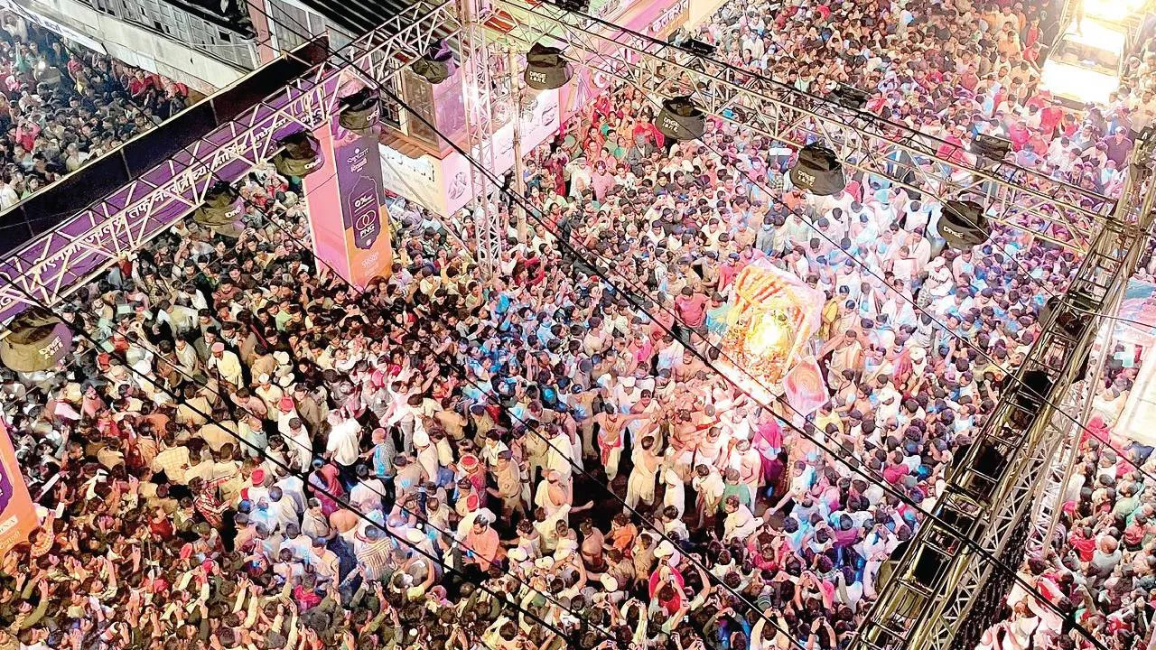 नवरात्रोत्सवात नवव्या माळेला मंगळवारी रात्री हा सोहळा पाहण्यासाठी हजारो भाविकांनी गर्दी केली. अंबाबाईने अष्टमीच्या रात्री महिषासुराचा वध केला, म्हणून फुलांनी सजलेल्या वाहनातून देवीची नगरप्रदक्षिणा निघते.